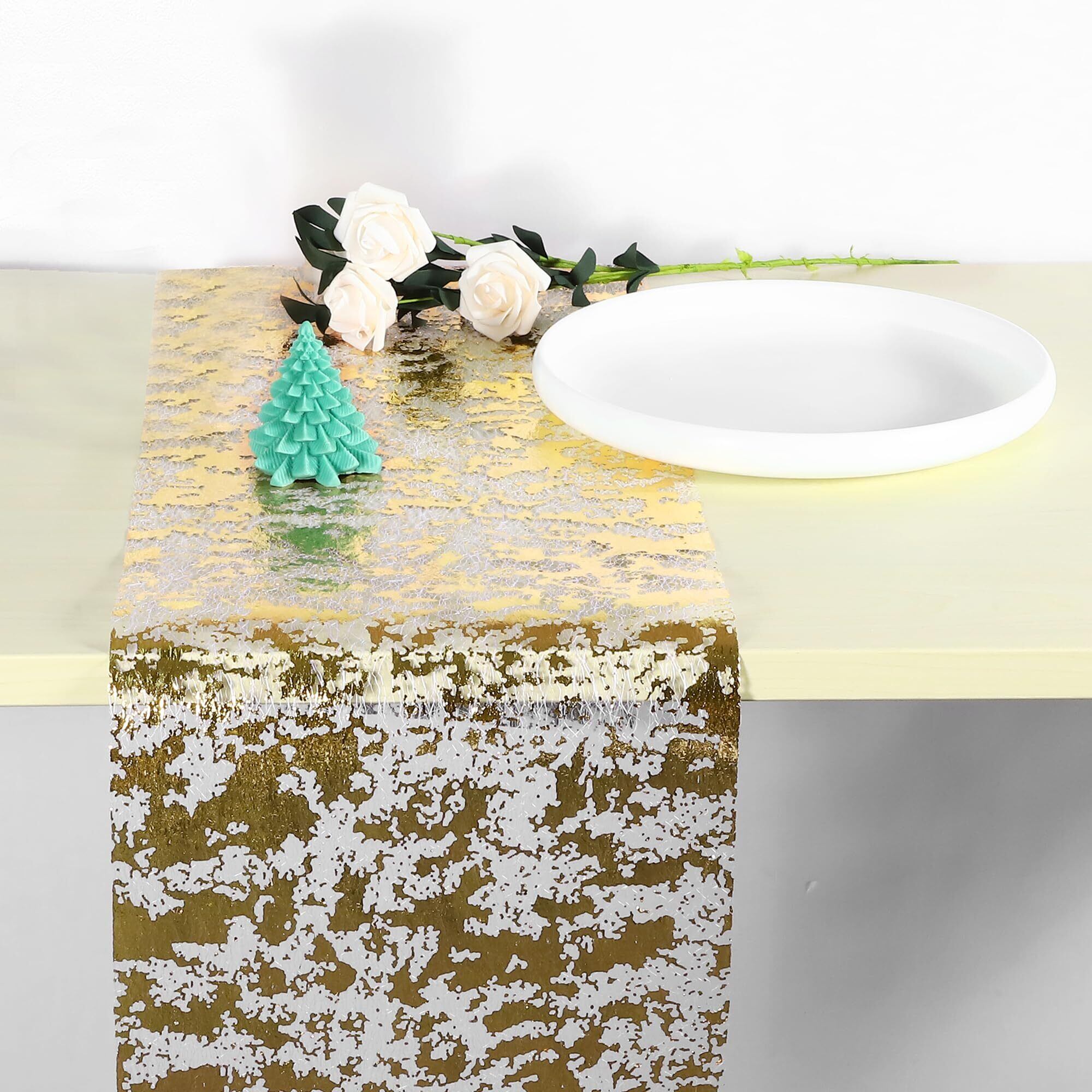 CAPASTEC ダイニングテーブルランナー ポリエステル テーブルランナー 洗濯機対応 汚れを防ぐ 結婚式 誕生日 ホームデコレーション用 クリスマス パーティー おしゃれ 長尺 家庭用 業務用 滑り止め ワンタッチ収納 10m×28cm ゴールド