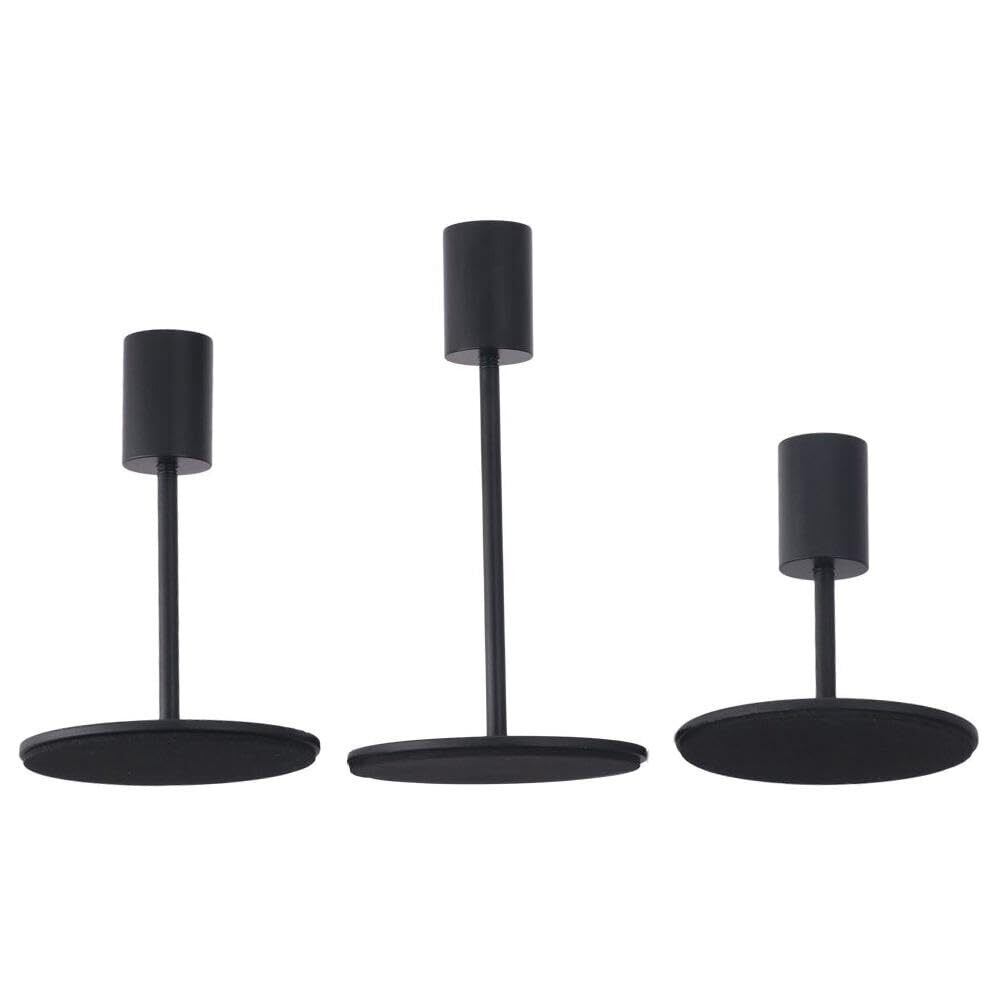3個セット ショート ブラック テーパー キャンドルホルダー 鉄製キャンドルスティック キャンドル 燭台 テーブルセンターピース ウェディングデコレーション用