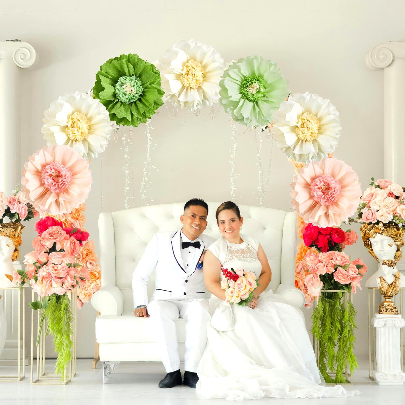 この巨大な20インチのセージグリーンのティッシュペーパーの花は、テーブルのセンターピースや壁の装飾として使用しても、あらゆるスペースの見事な焦点になります。