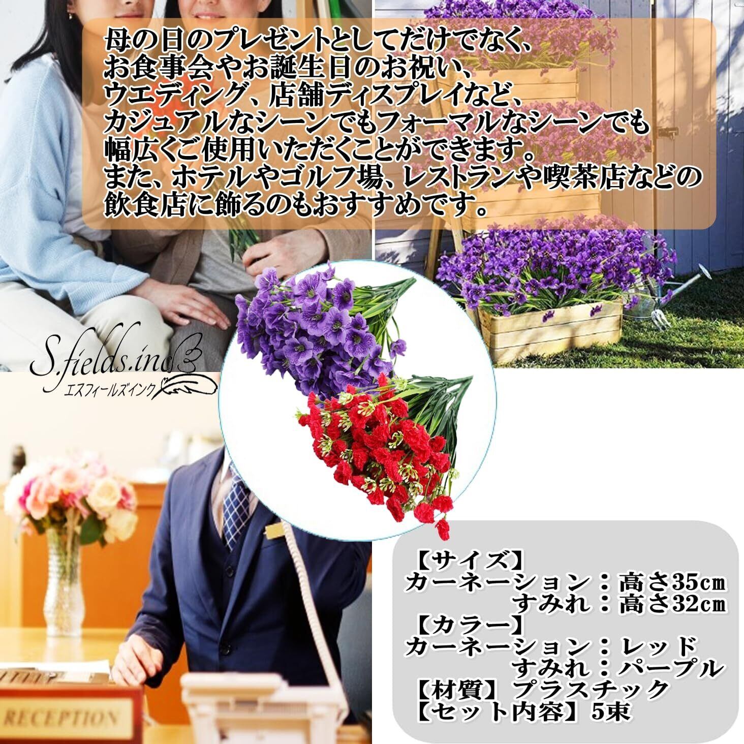 S.fields.inc 造花 花束 ブーケ カーネーション すみれ 5束 シルクフラワー プラスチック 母の日 (すみれ)