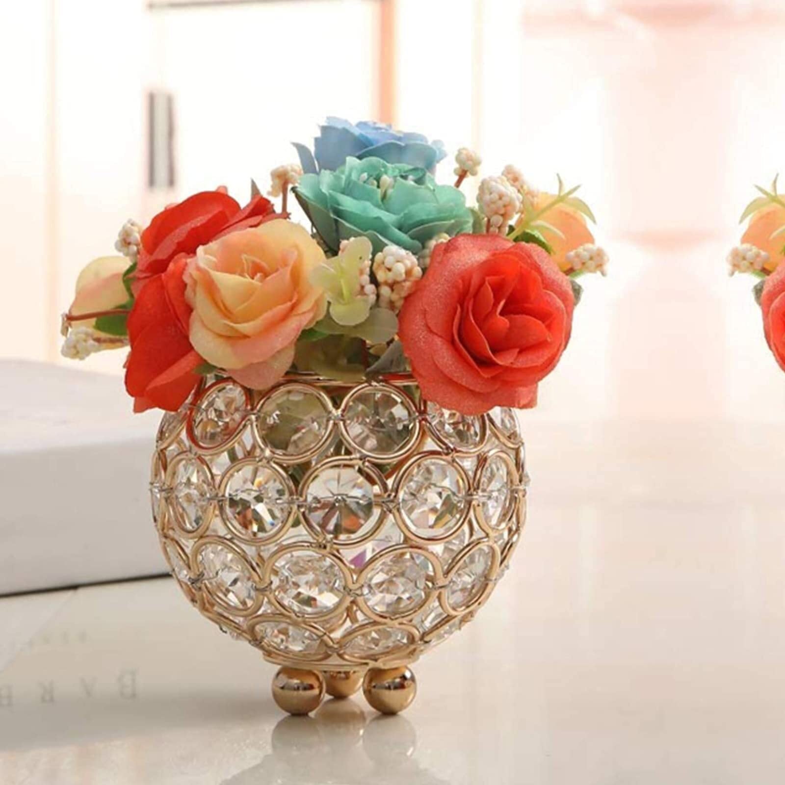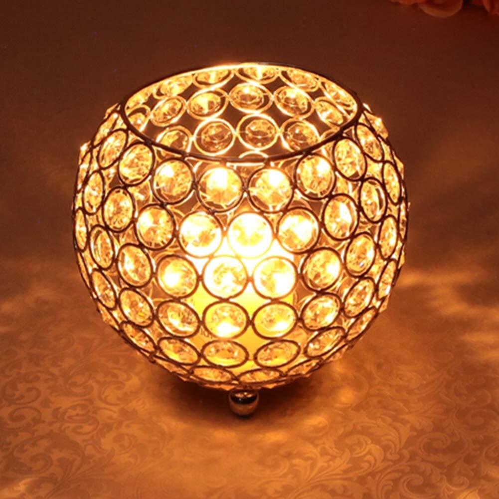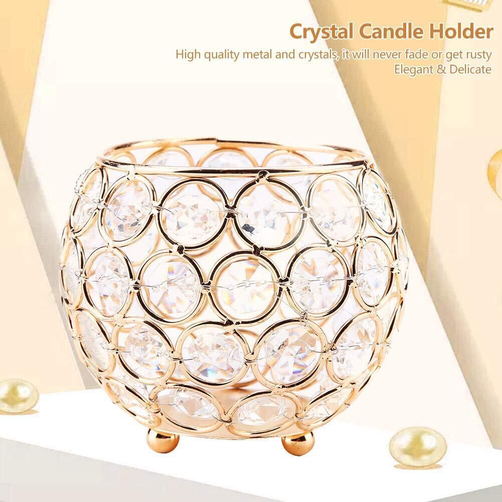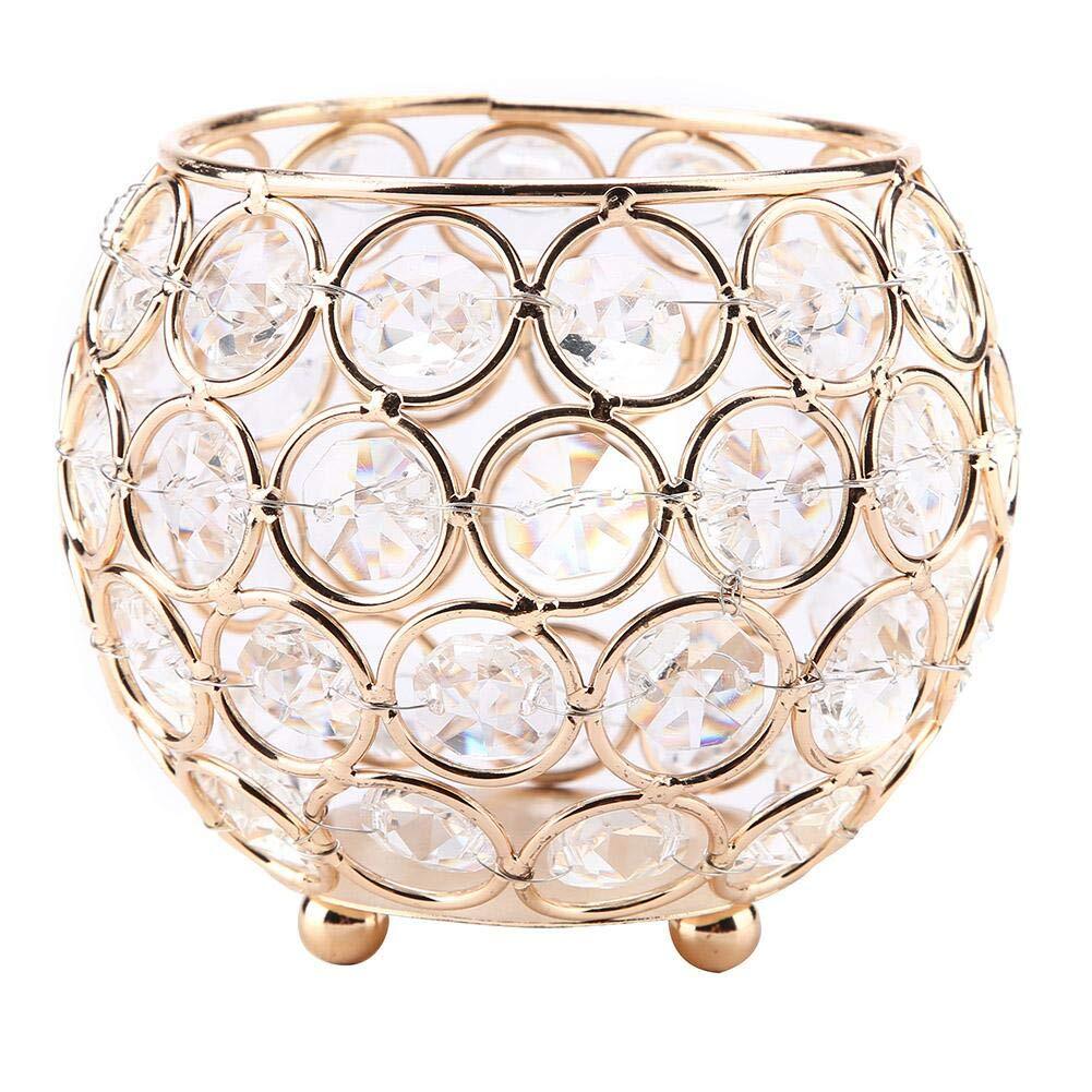 Hilitand クリスタルキャンドルホルダーシルバー 奉納ティーライトキャンドルホルダー 結婚式 クリスマス用 軽量 キャンドルホルダー クリスタル キャンドル ホルダー (ゴールド)