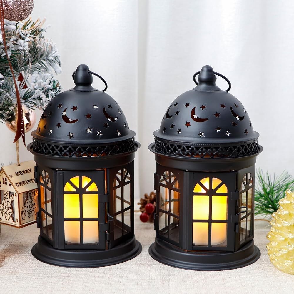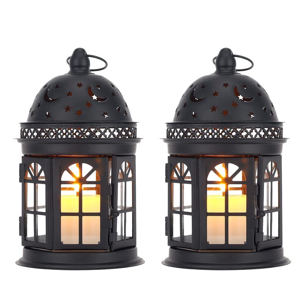 JHY DESIGN 2個セット キャンドルホルダー 21cm おしゃれ 間接照明 吊り下げ キャンドルランタン アンティーク メタル ティーライトキャンドルホルダー ガーデン 廊下 ベランダ 屋外 屋内 寝室 照明 インテリア 飾り キャンプ 車中泊 ハロウィーン(ブラック)