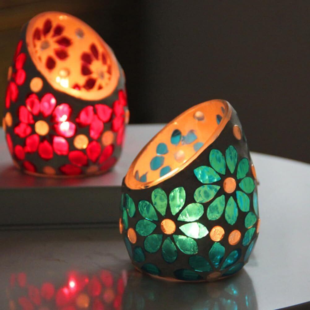 KESYOO キャンドルホルダー キャンドル立て キャンドルスタンド モザイク ガラス ろうそく立て お香 ろうそく キャンドルカップ 燭台 結婚式・パーティー・記念・ホーム飾り(蘭の花)