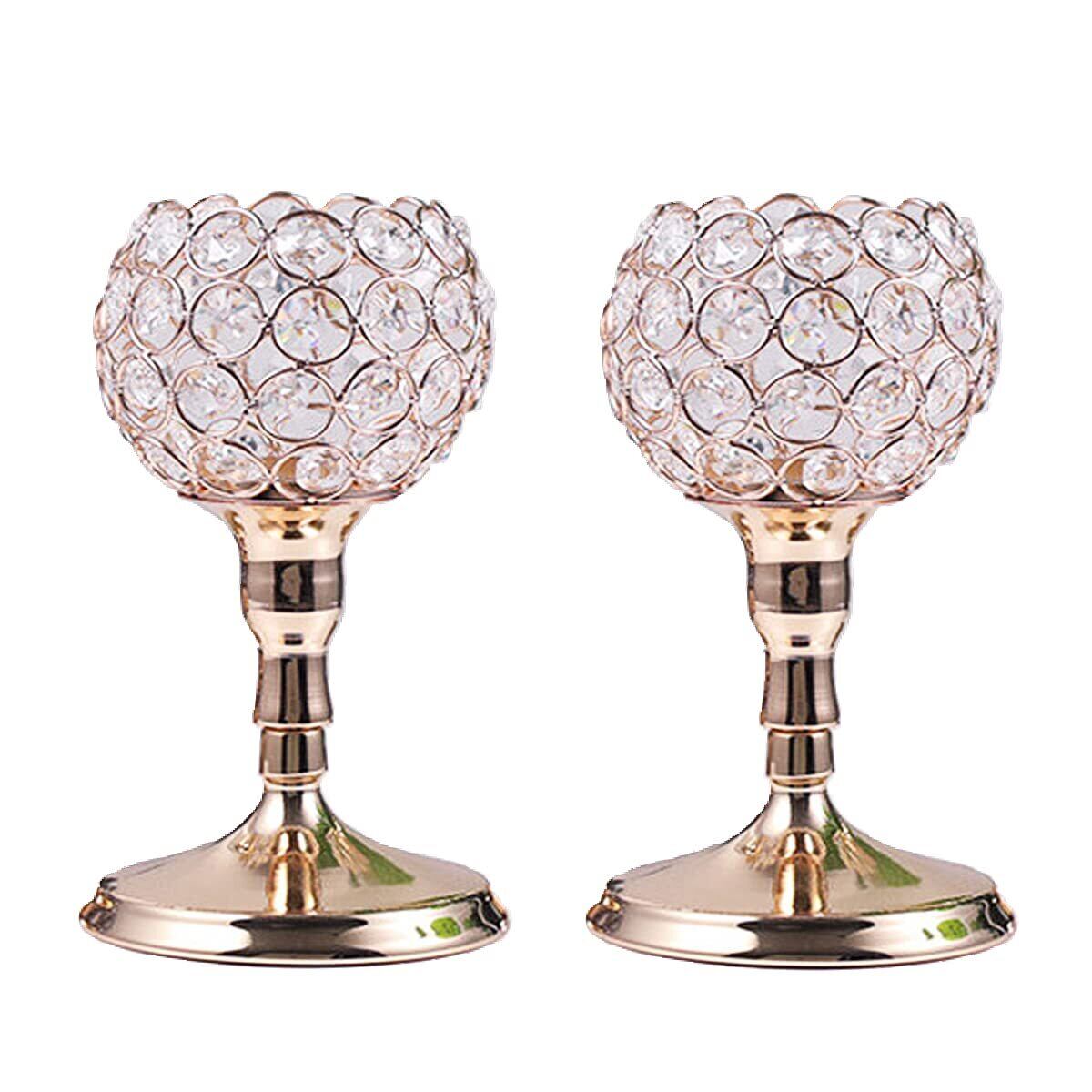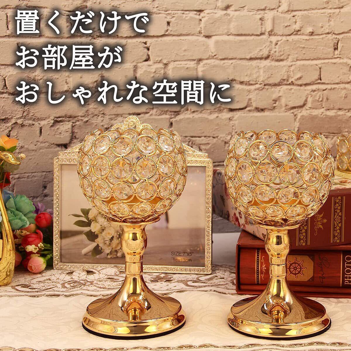 dodtazz クリスタル キャンドルスタンド ゴールド キャンドルホルダー ボール型 カフェ 燭台 (210mm 2個セット)