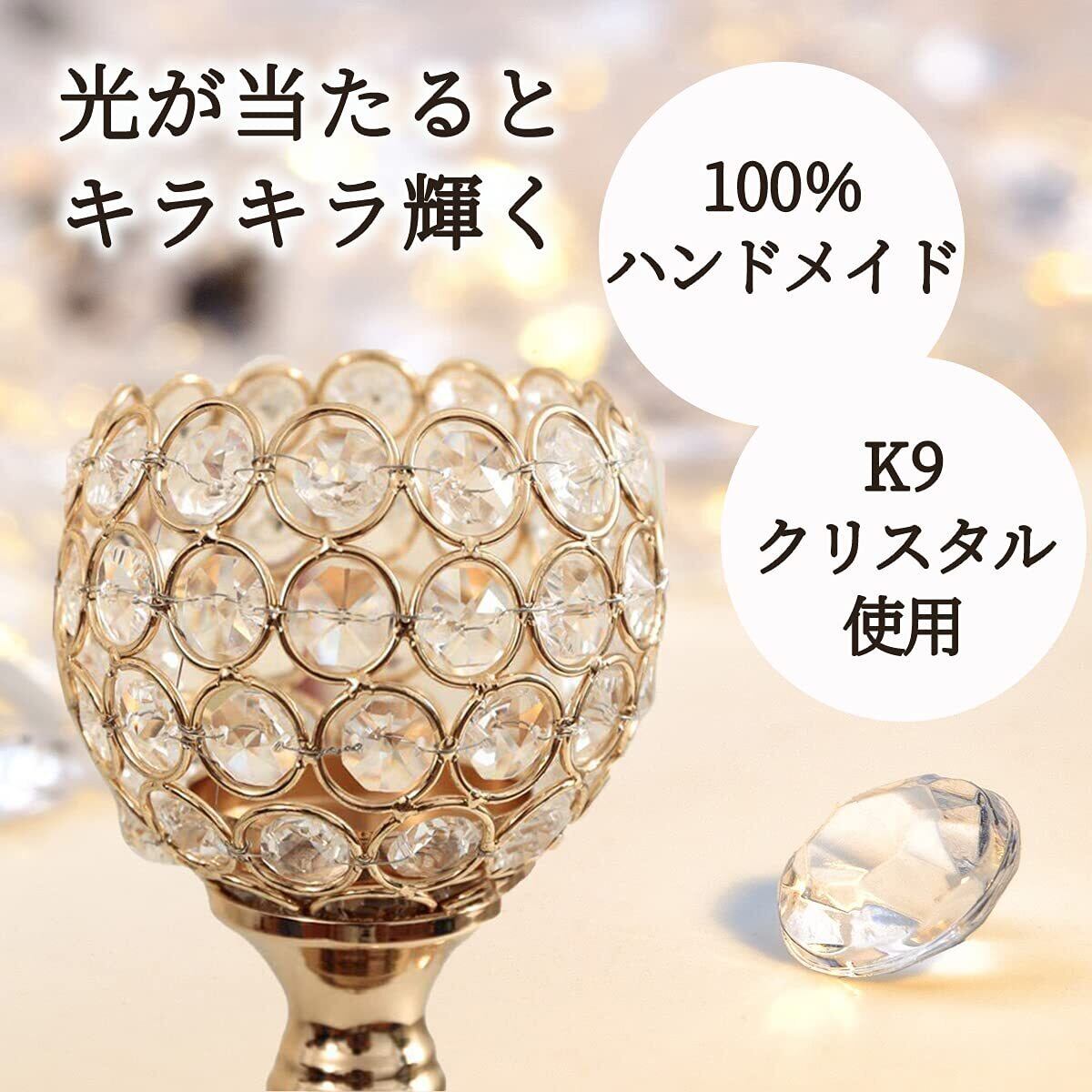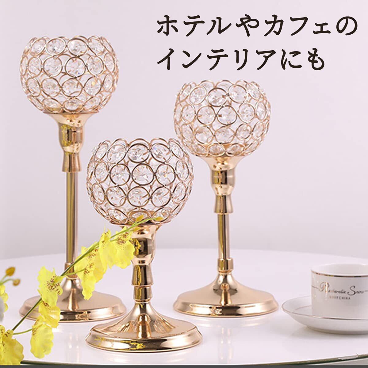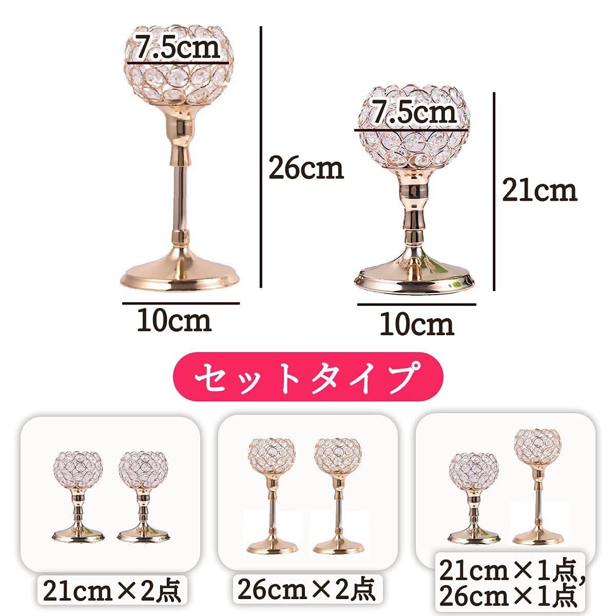 ゴールドカラーを土台にしたクリスタルのキャンドルスタンドです。高さが違う燭台2台セットでのご用意になりますので、並べてディスプレイするだけでお洒落な空間ができあがります。