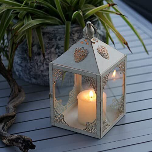 SOWJECE キャンドルホルダー アンティーク風 おしゃれ 屋外 キャンドルランタン インテリア レトロ 人気 アウトドア アイアン カメヤマキャンドルハウス ろうそくランタン (白い)