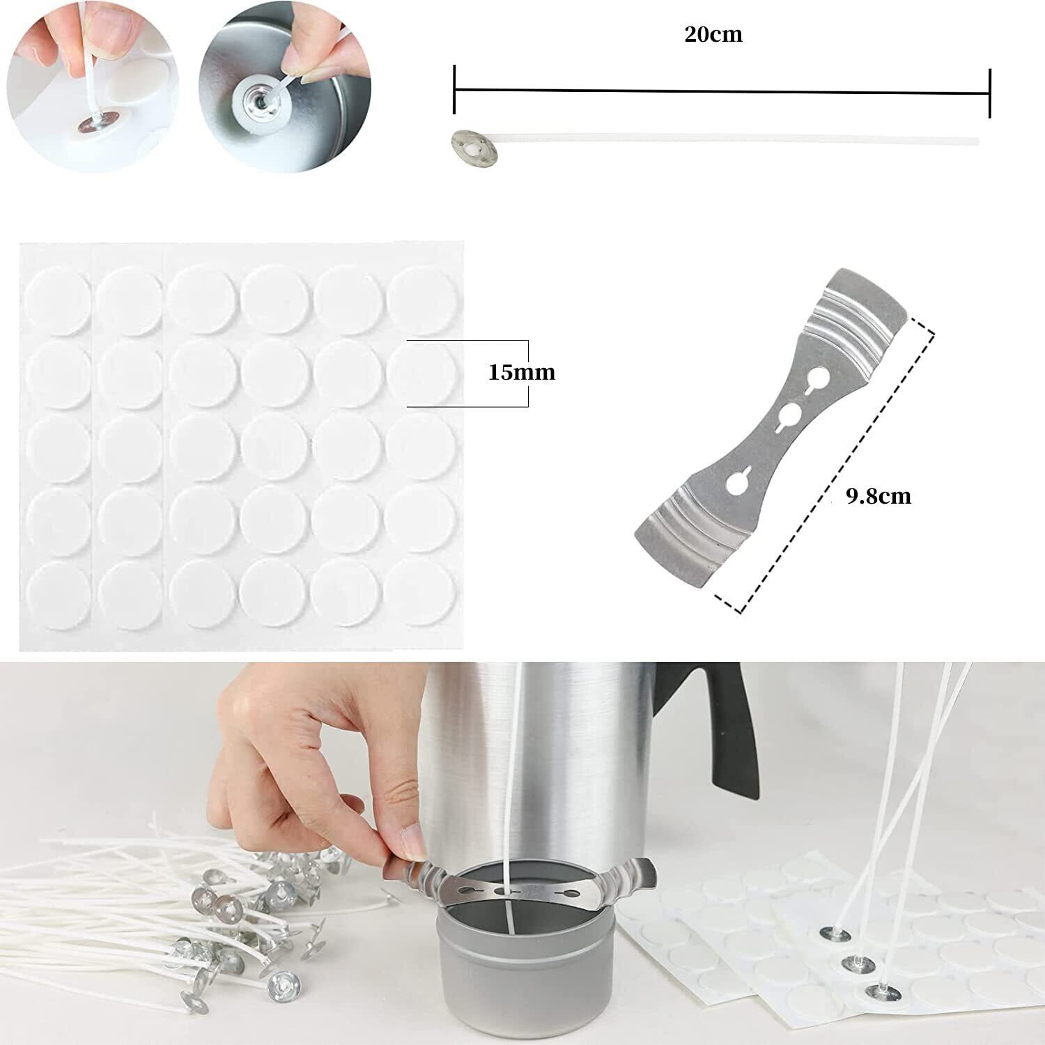 【セット内容】キャンドル芯*100個 、芯固定ホルダー*3個、丸形両面テープ×100個。注意:輸送中に押し出しが発生し、ろうそくの芯が折れやすくなる可能性があります。このような場合は、すぐに連絡してください。