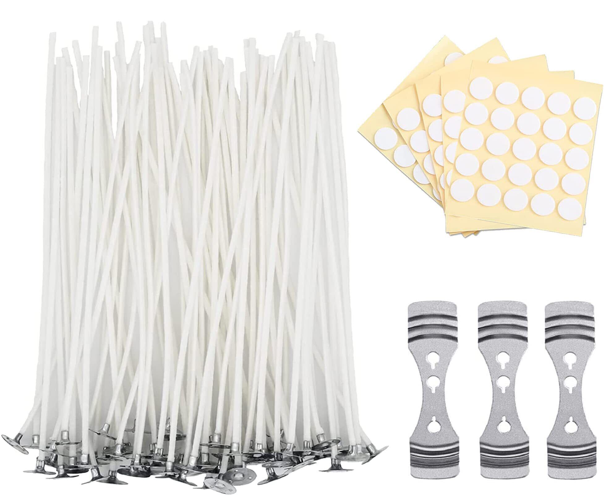 【新着商品】キャンドル芯 100本セット 20cm ろうそく芯 綿100%のキャンドル材料 キャンドルホルダー 芯固定ホルダー 5個 DIY手作り 座金付き 丸形両面テープ付き ジェルキャンドル向け | paghag
