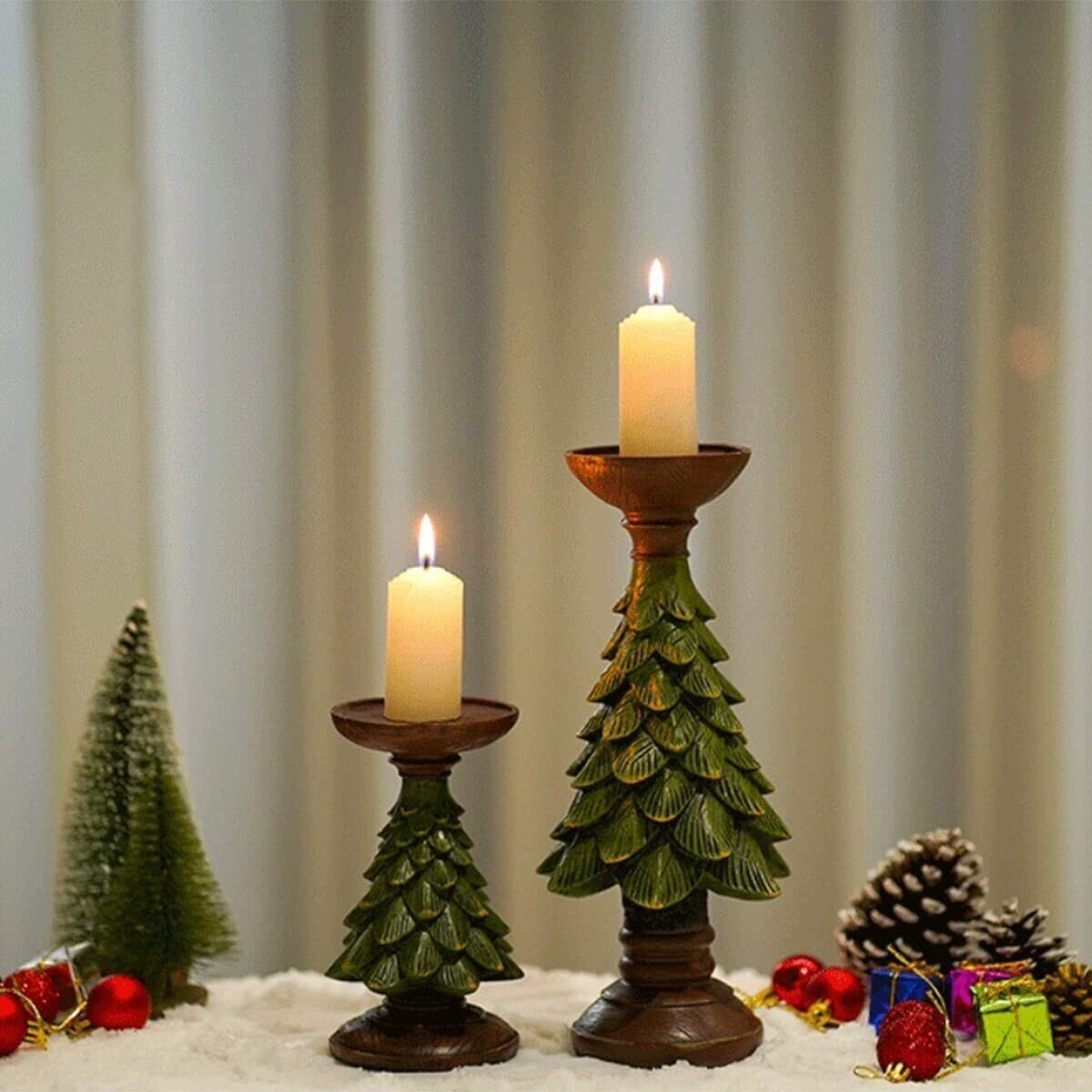 Lanito キャンドルホルダー キャンドルスタンド クリスマス 飾り 置物 燭台 食卓飾り ミニクリスマスツリー クリスマスツリーキャンドルホルダー 樹脂材料 クリスマス パーティーホームインテリア 装飾品 撮影道具 (S 8.5*8.5*12cm)