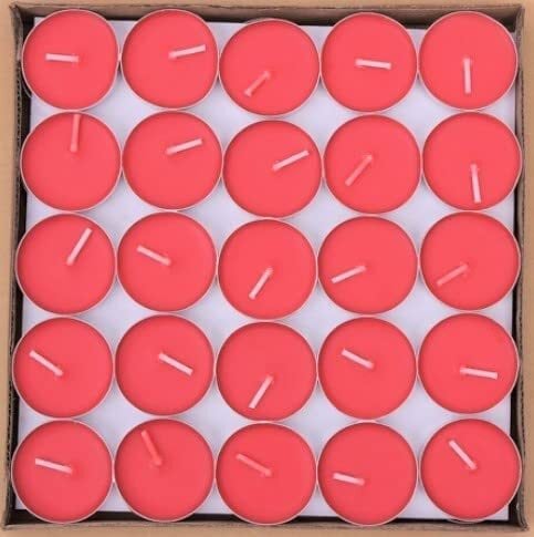 HIDERME ティーライトキャンドル ろうそく アルミカップ 無香料 50個入り (レッド, 円形)