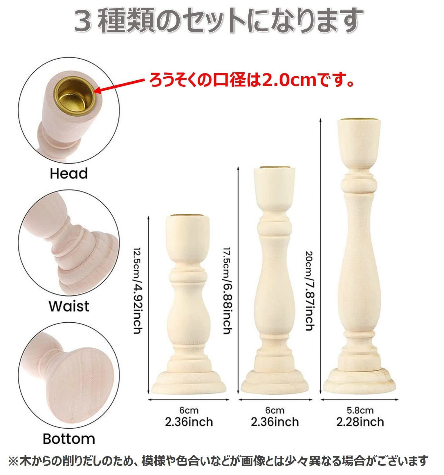 [CFT TIME]キャンドルホルダー 北欧 おしゃれ スタンド 木 木製 ろうそくたて シンプル 屋内屋外 (3点セット)