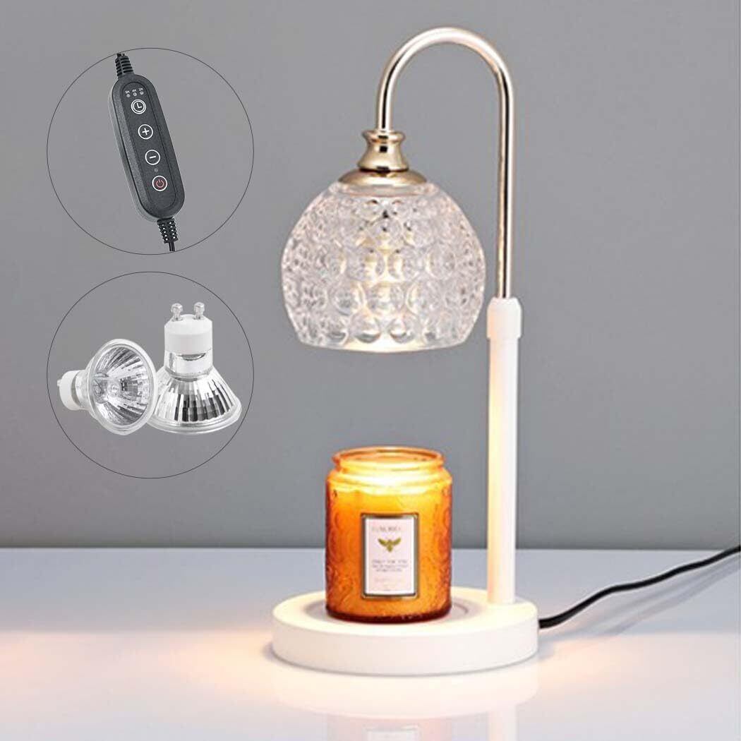 GaUmiME キャンドルウォーマー タイマー付き 高さ調整 ガラス キャンドルウォーマーランプ キャンドルホルダー キャンドルランプ アロマランプ アロマキャンドルランプ 間接照明 プレゼント (ホワイトB,調光+タイマー)