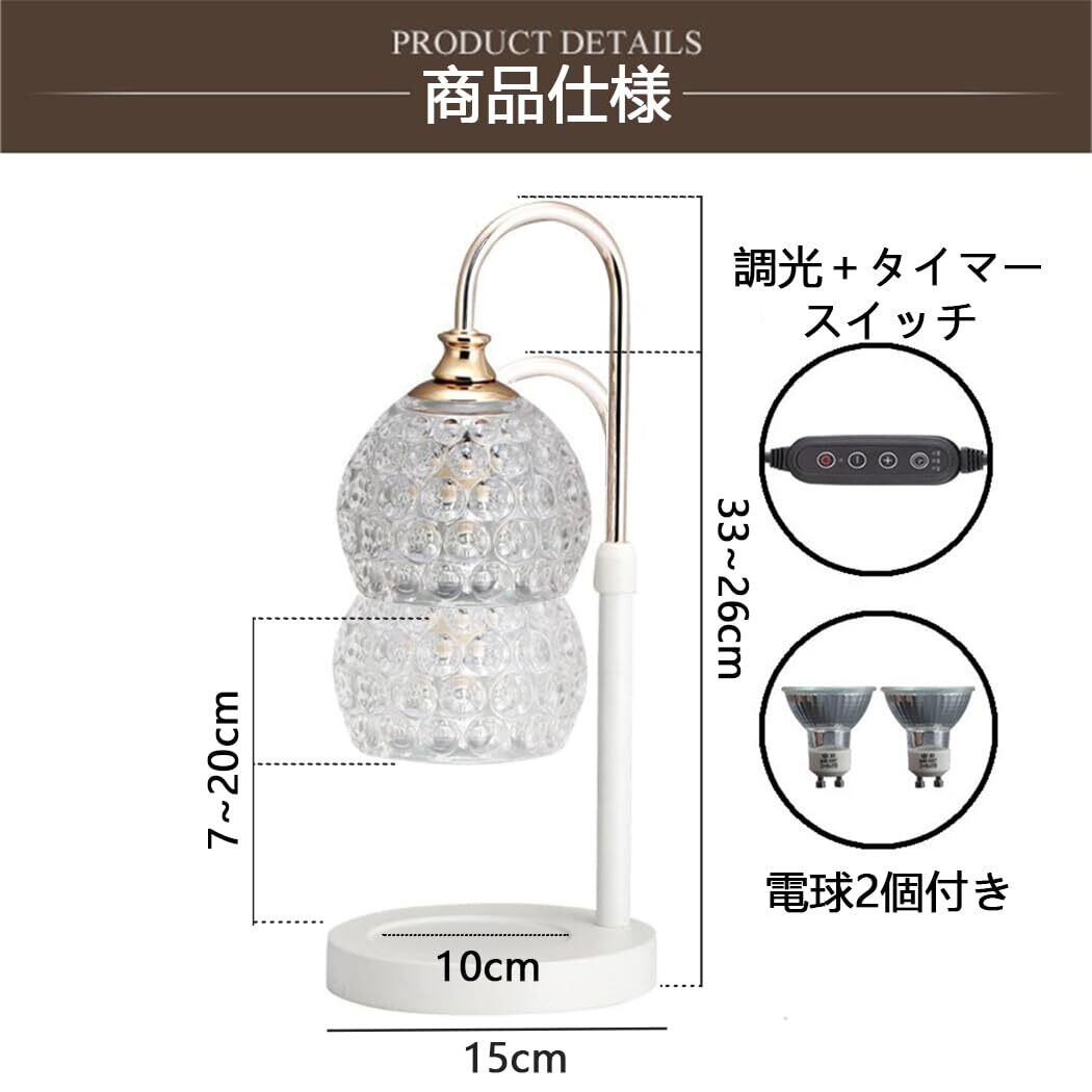 【2022最新】GaUmiME キャンドルウォーマー タイマー付き 高さ調整 ガラス キャンドルウォーマーランプ キャンドルホルダー キャンドルランプ アロマランプ アロマキャンドルランプ 間接照明 プレゼント (ホワイトB,調光+タイマー)