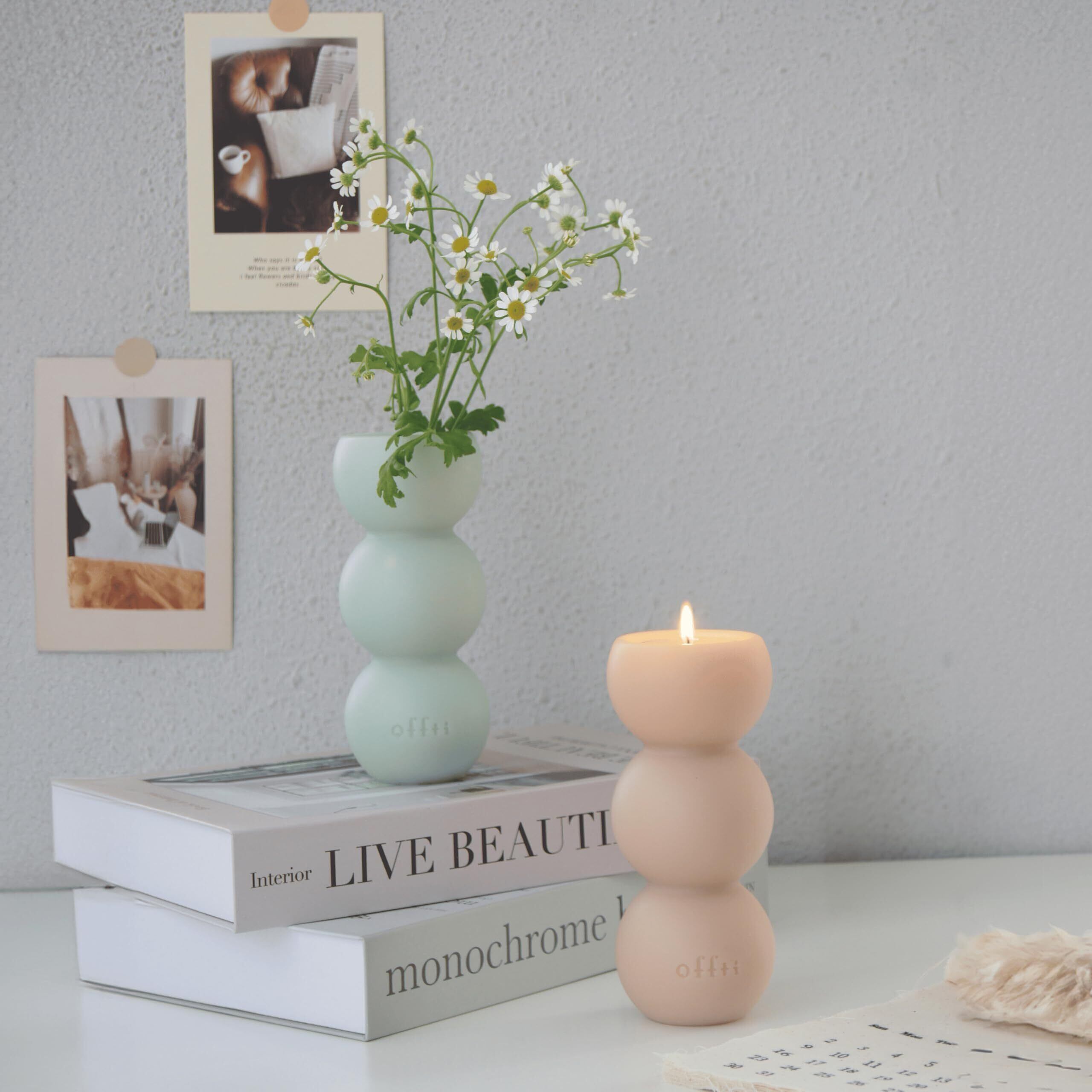 ボールが3つ重なってモコモコとした綿のようなデザインのキャンドルホルダーです。ぼんぼりのように、あかりが丸く浮かびます。普段はお部屋のインテリアとしてお楽しみいただけます。