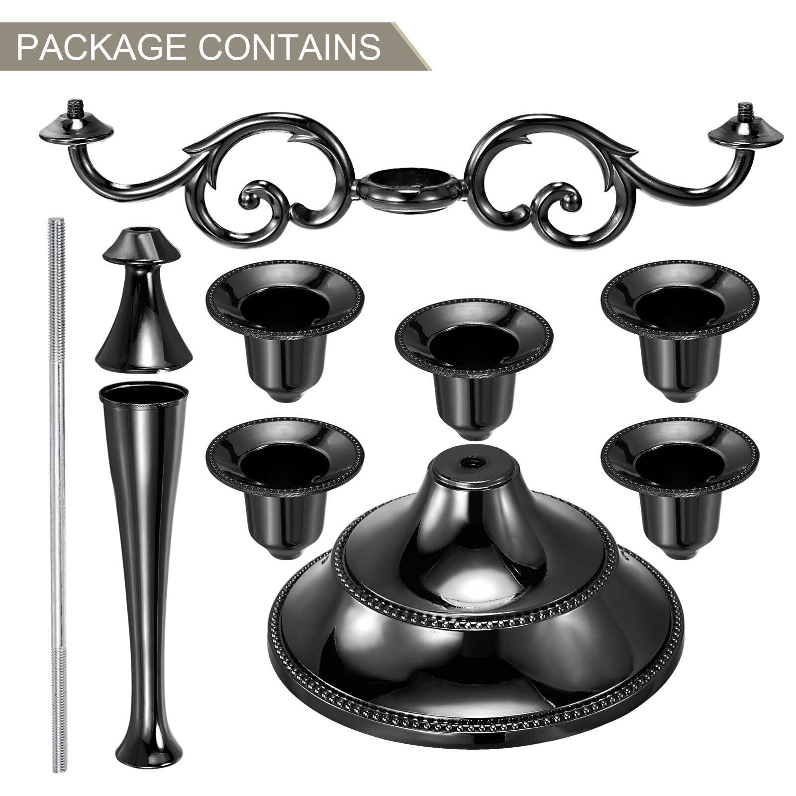 PATIKIL 燭台キャンドルホルダー 5アーム 金属製燭台スタンド テーパーキャンドル用 27 cm トールキャンドルスタンド 家の装飾 結婚式 誕生日 パーティー ダイニング テーブル用 ブラック