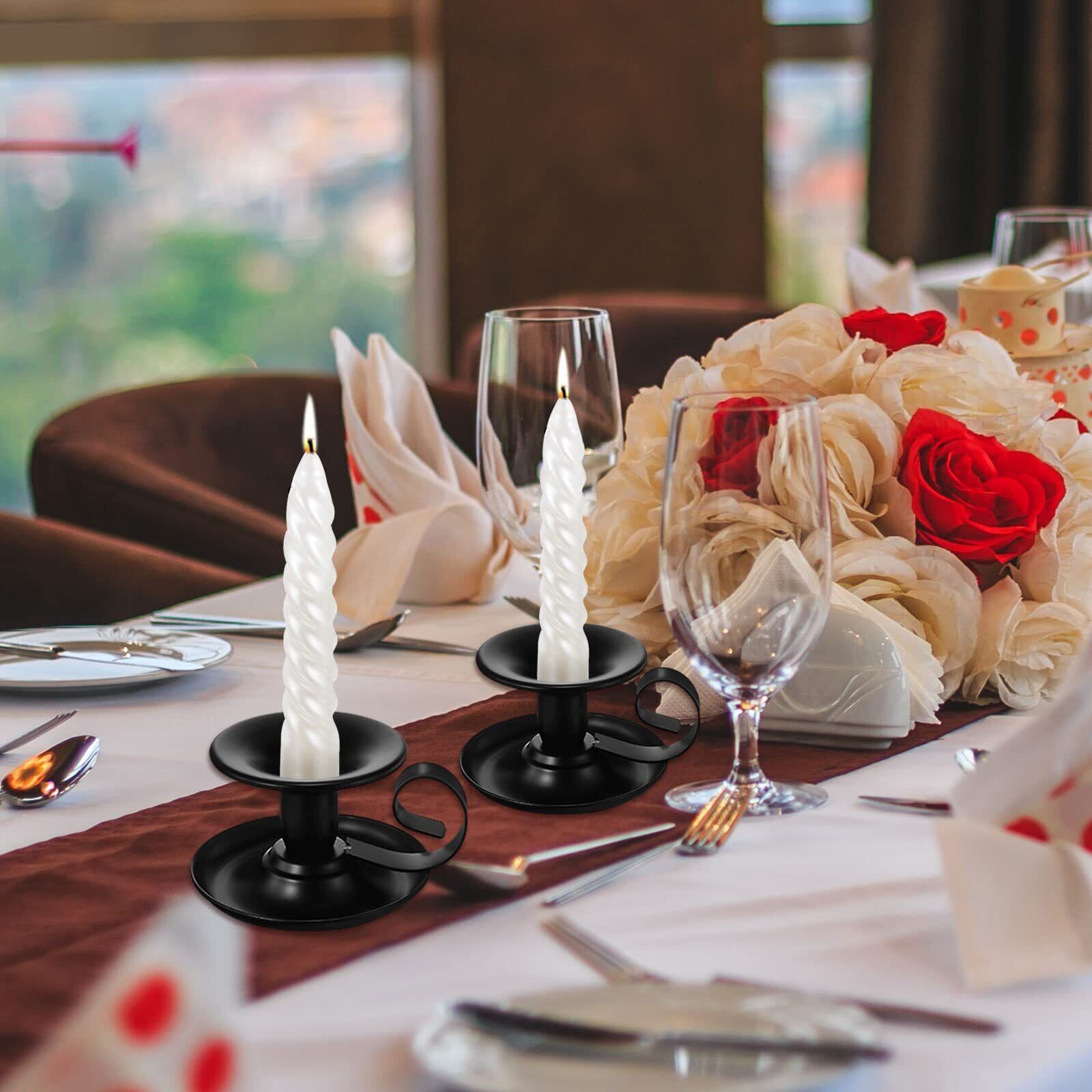 PATIKIL レトロアイアンテーパーキャンドルホルダー 2セット ブラックシンプルな燭台ホルダー キャンドルライトスタンド テーブルセンターピース パーティー 結婚式 ダイニング装飾用