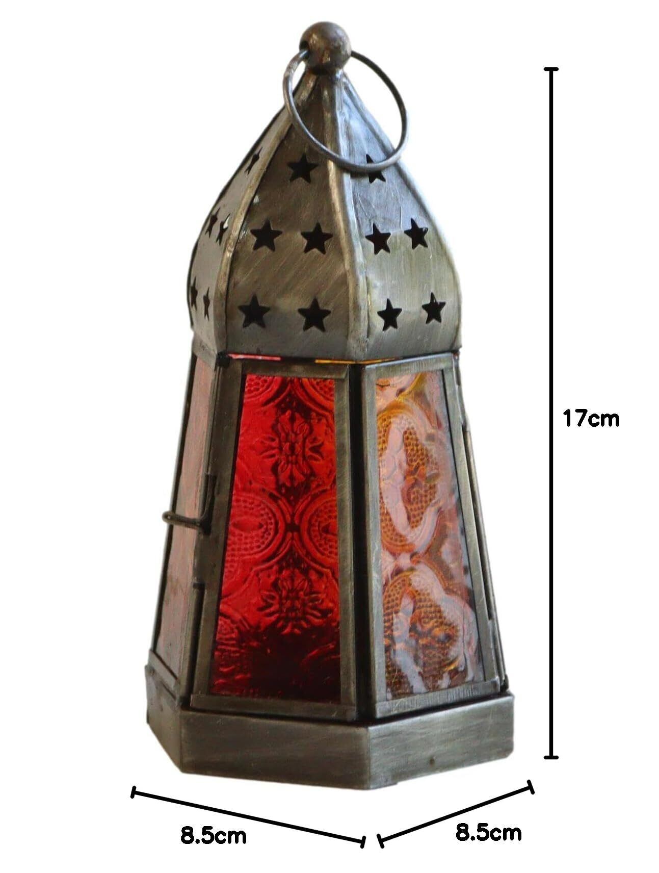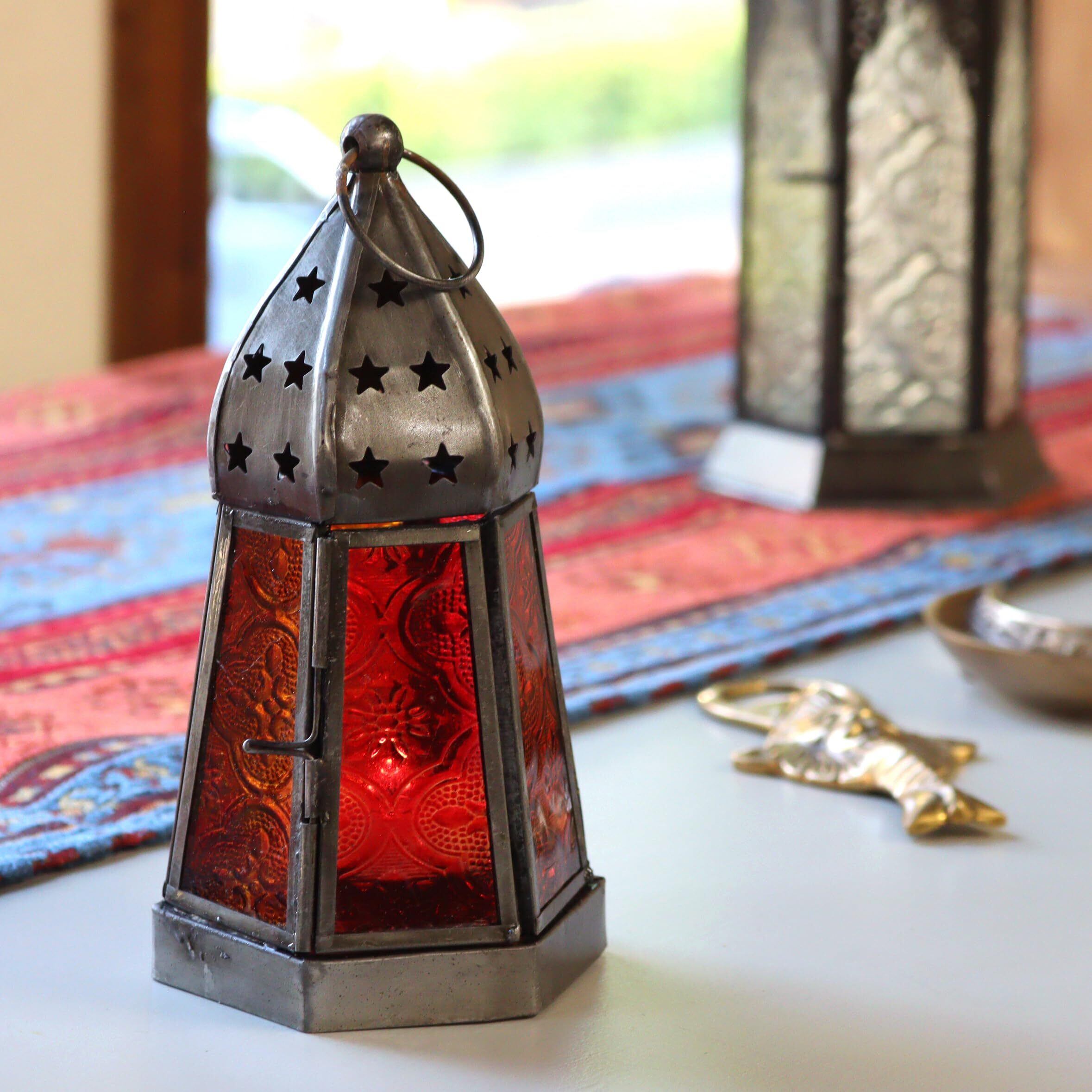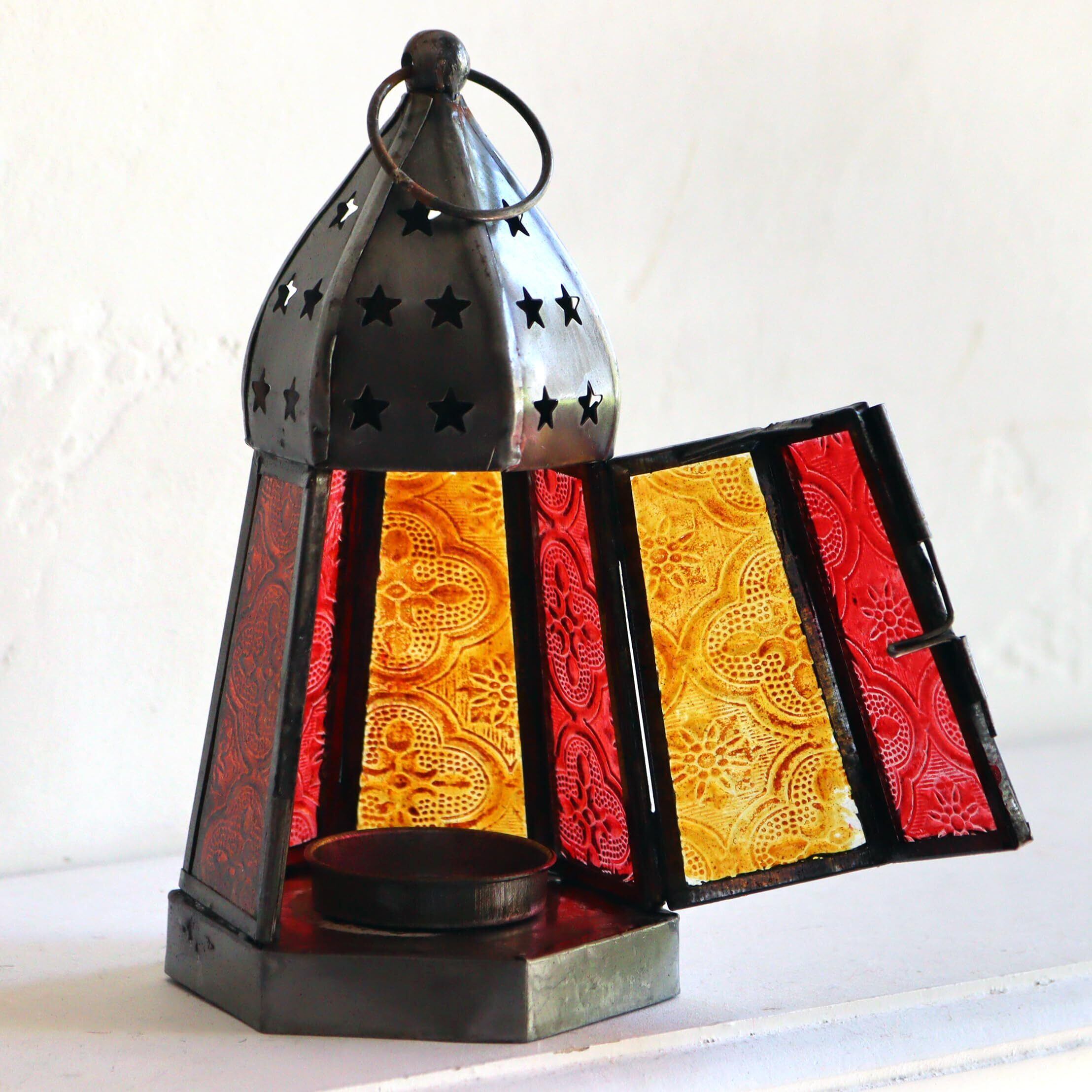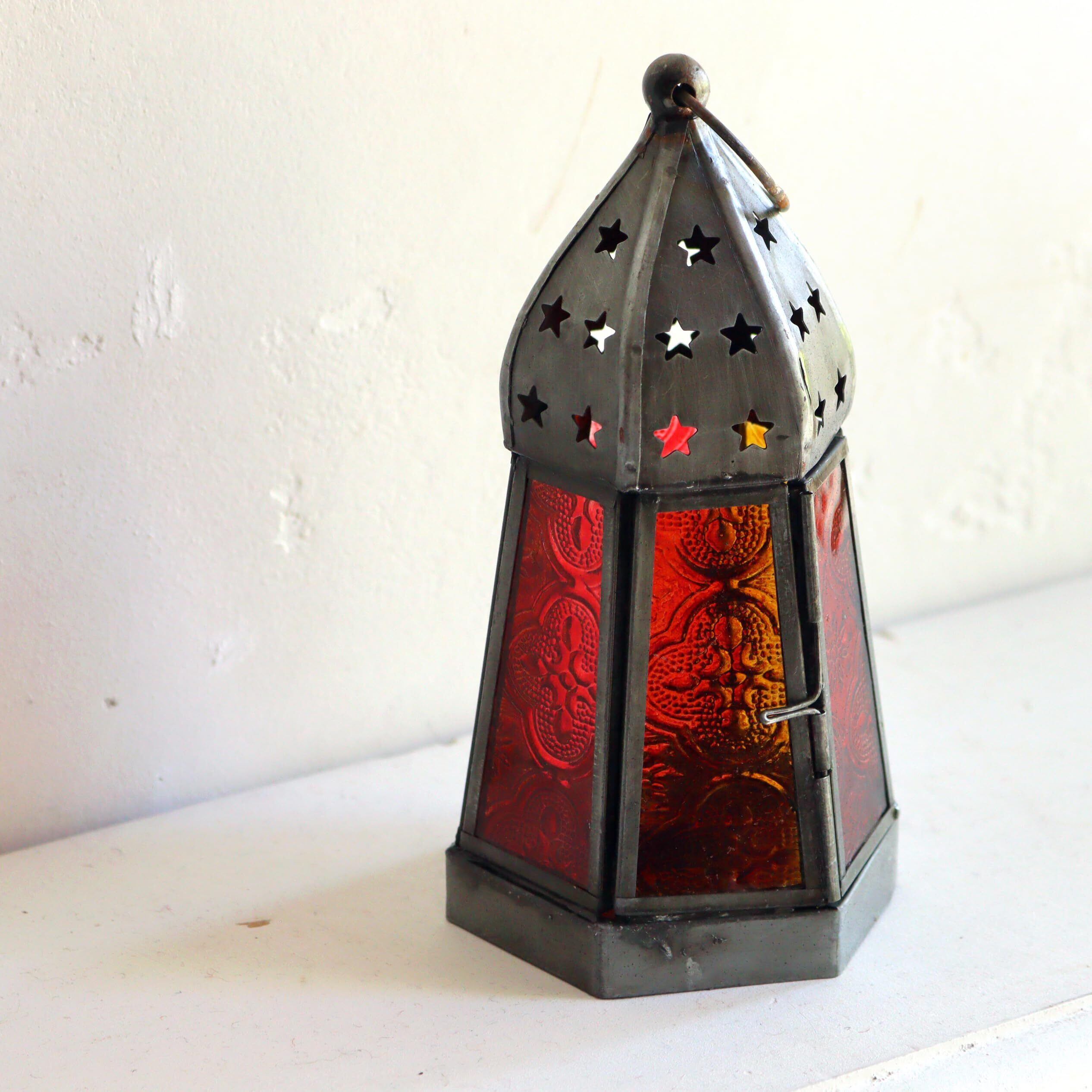モロッコランタン キャンドルホルダー 高さ17cm 6面のレリーフガラス Morocco Lantern Candle holder (アンバー)