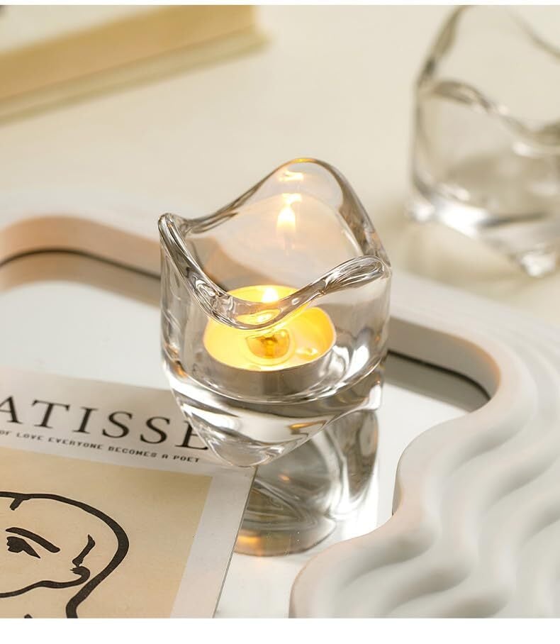 【数量】一組4つのガラス曲線透明キャンドルスタンド(キャンドルは含まれません)、ロマンチックな雰囲気を演出します。