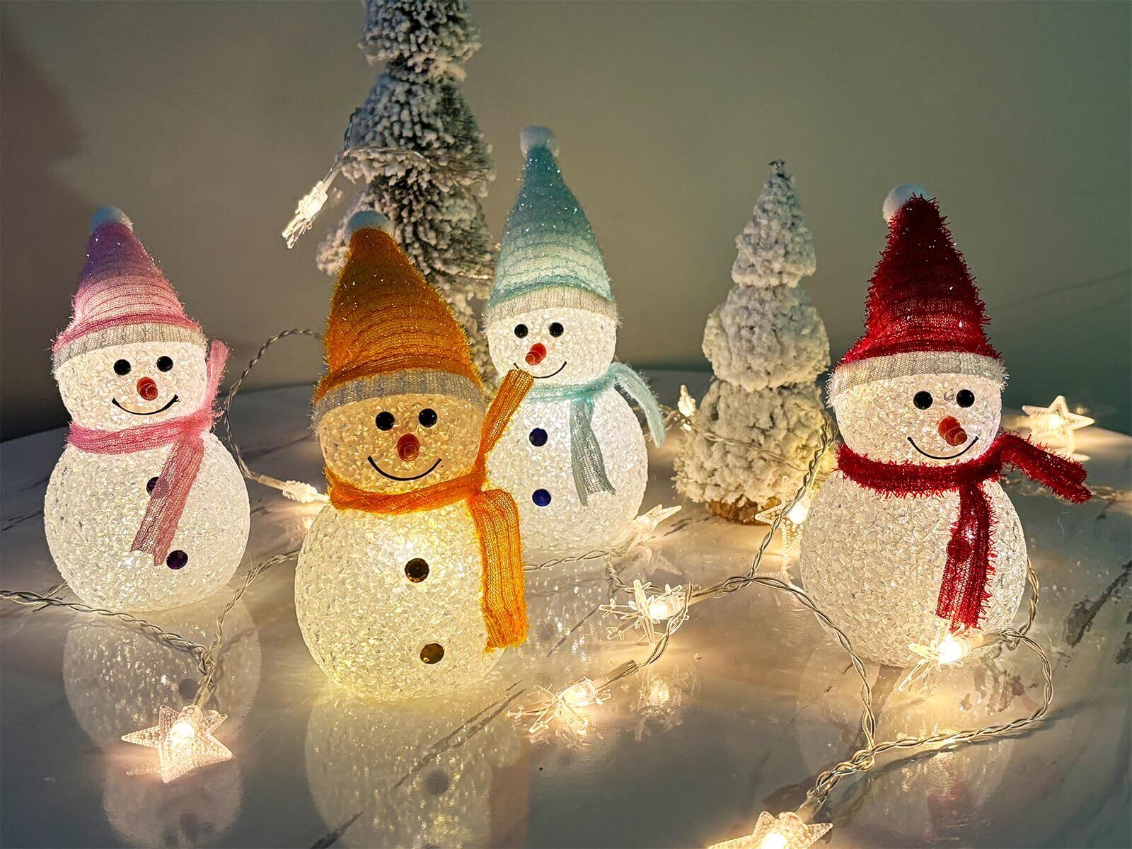 雪だるまの形をした小さな彫像の明かりは、クリスマスのテーマにぴったりです。食卓、机、玄関の入り口を飾るのに適しています