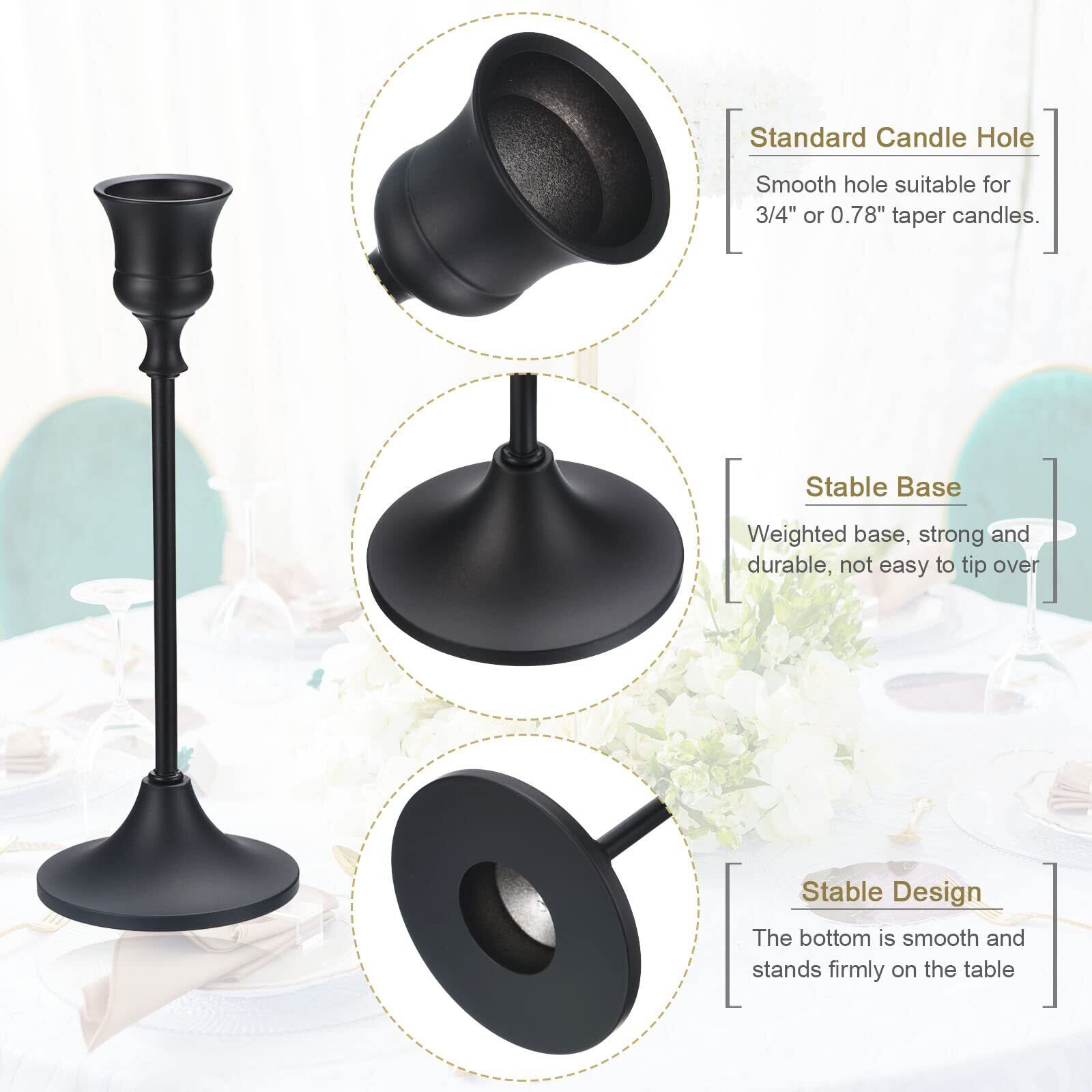 丈夫な素材: 3個のテーパーキャンドルホルダーのセットは固体金属素材で作られており、明るい表面、つや消し金属デザイン、光沢と粉体塗装が施されており、錆や欠けを防ぎ、防錆、耐食性があります。黒の表面デザインは美しくエレガントで、エレガントな印象を与えます。