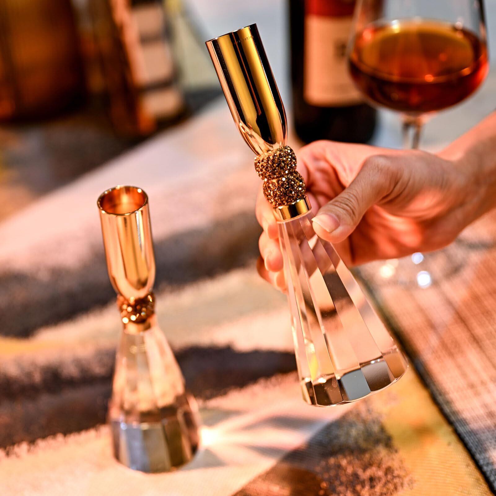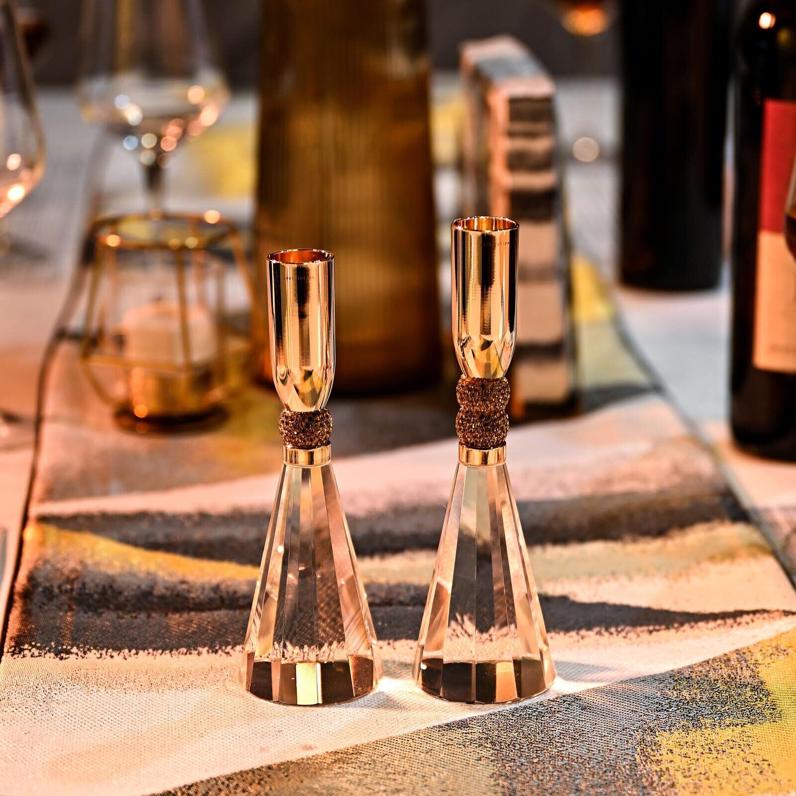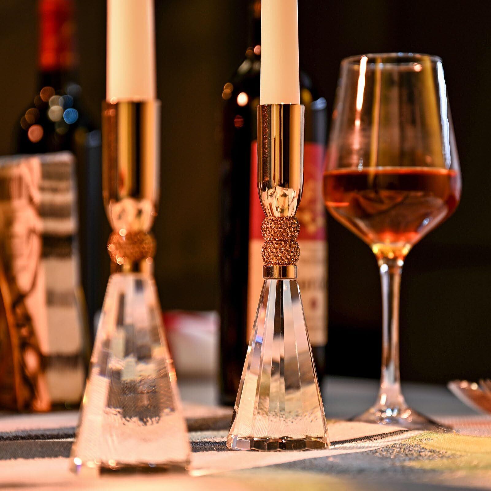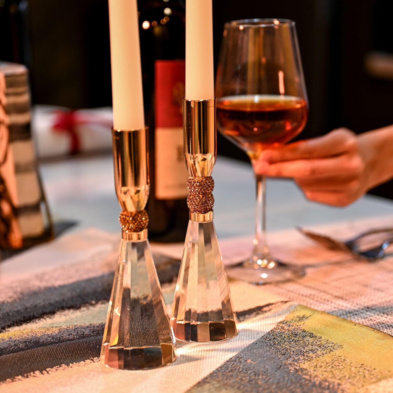 idyllictime キャンドルホルダー K9 クリスタル ヘビーベース テーブルデコレーション デコレーション クリスマス パーティー ウェディング ハロウィン 2個セット (ゴールド)
