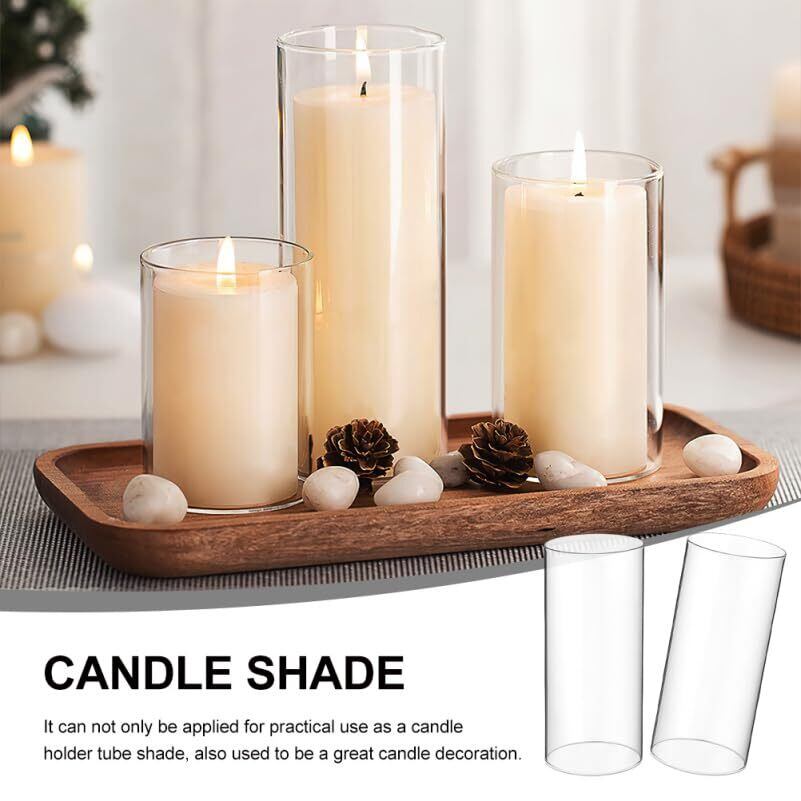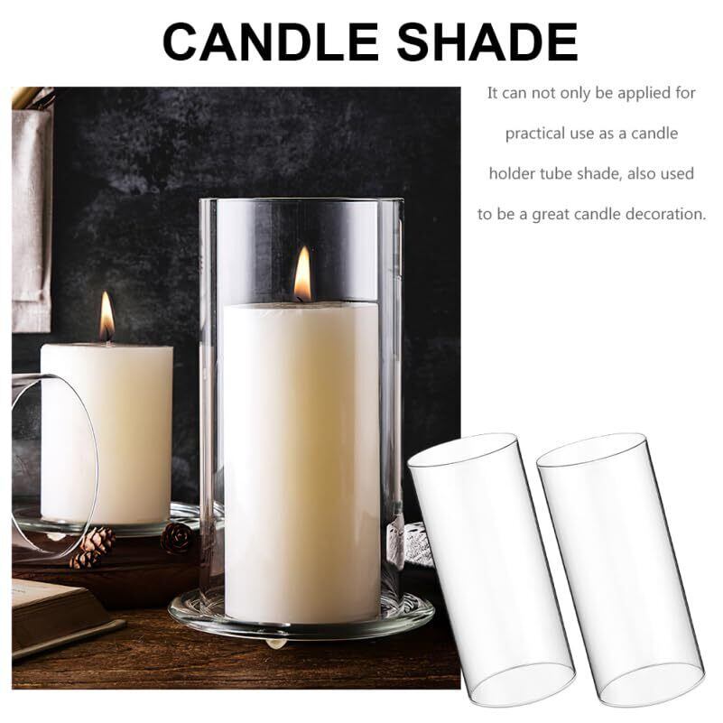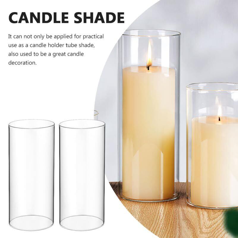 NUOBESTY ガラスのキャンドルランプシェード 煙突管キャンドルホルダー ガラスシリンダーキャンドルスリーブ ハリケーングラスのキャンドルカバー ハリケーンの煙突管 ガラスカバー 家庭 2個入