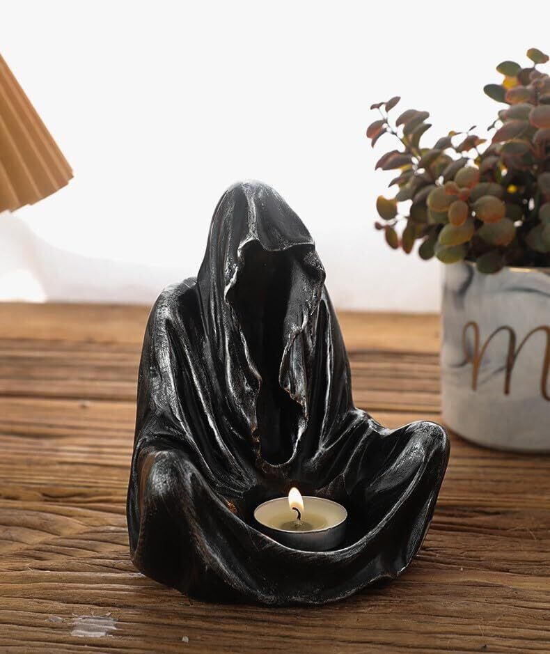 キャンドルホルダー 燭台 黒 怖い 幽霊 ハロウィン 雰囲気づくり 欧米風 置物 装飾 (黒銀)