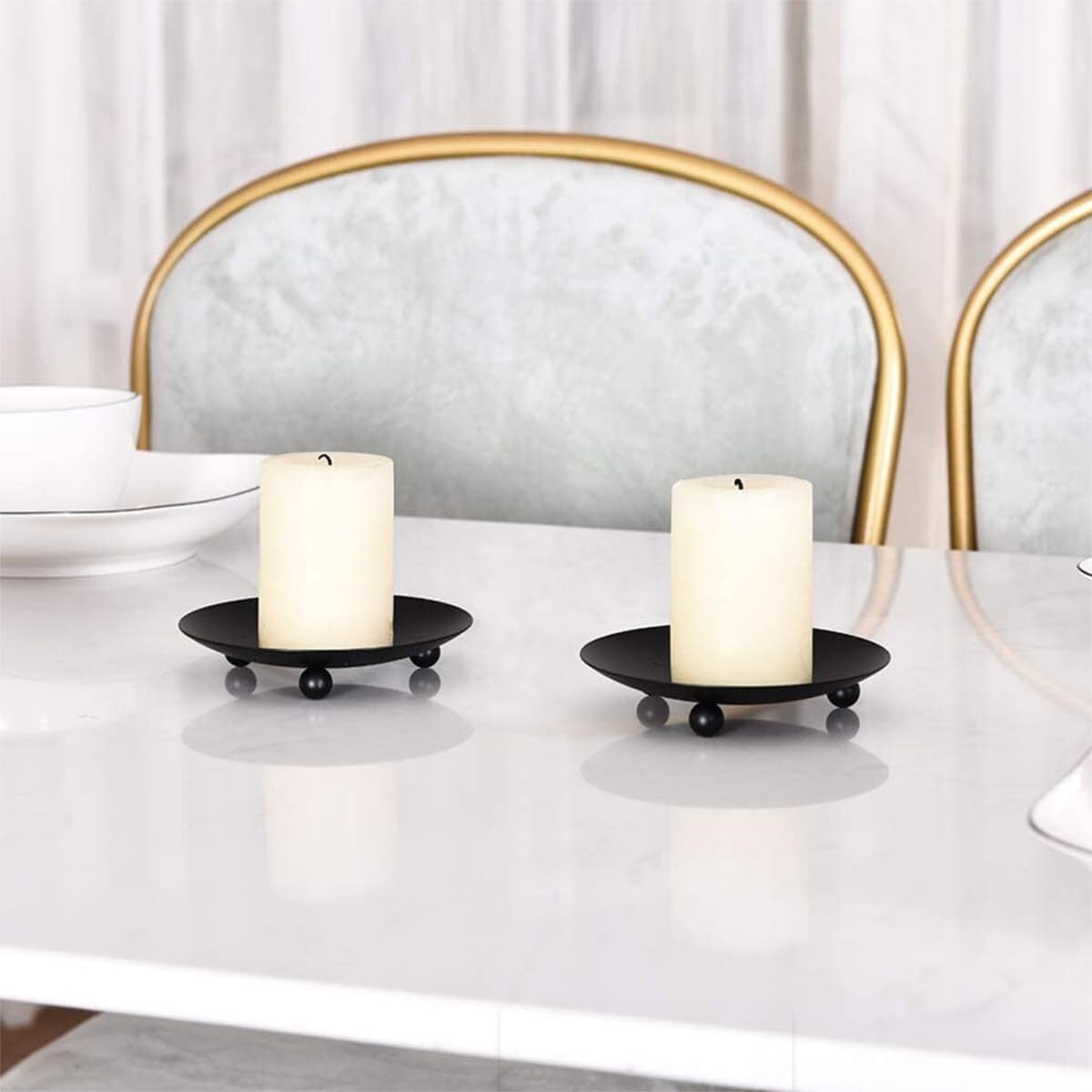 Unikato キャンドルホルダー パロサント 受け皿 キャンドルスタンド 2個 北欧 おしゃれ 燭台 円形 鉄製 キャンドル 皿 収納トレー アクセサリートレー 小物入れ 置物 食卓飾り 雰囲気作り パーティー 結婚式 誕生日 お祝い用品 (黒)