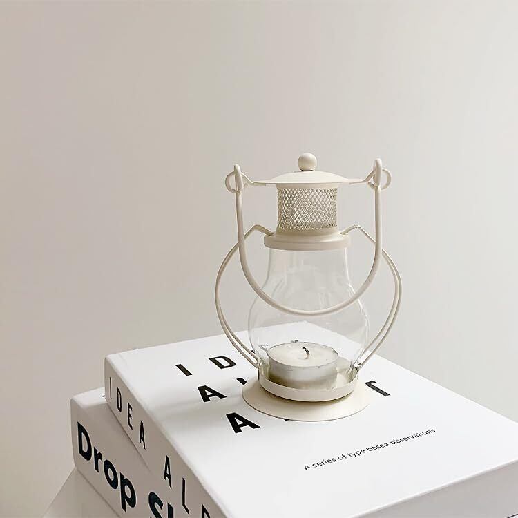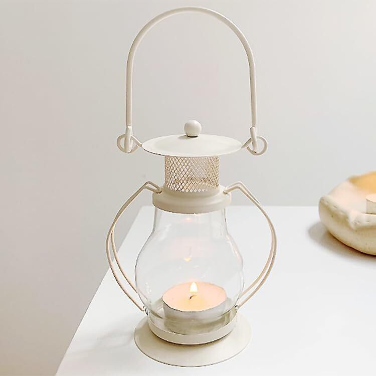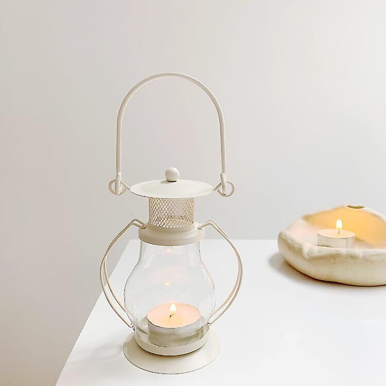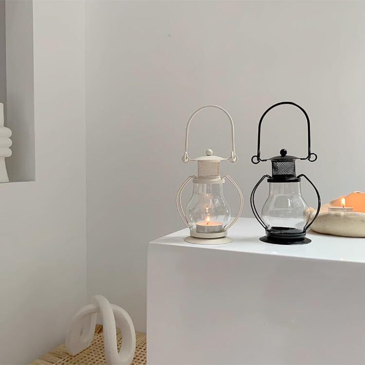【特価セール】キャンドル ランタン キャンドルホルダー 韓国雑貨 海外インテリア モノトーン キャンドルランプ キャンドルライト アロマ ライト ランプ 間接照明 オブジェ アウトドア キャンプ 取っ手付き 持ち手付き (c-za0564 ホワイト)