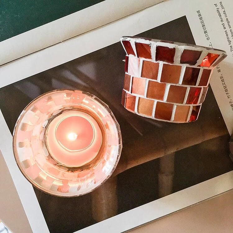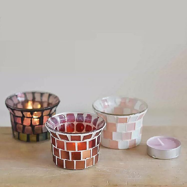 灯りの反射が美しいモザイクガラスのキャンドルホルダー