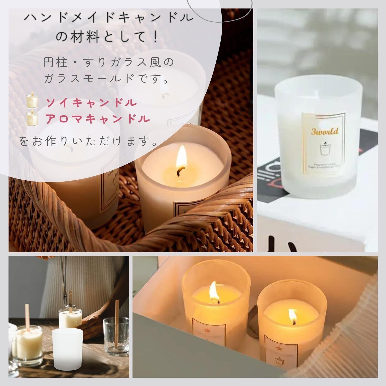 3world キャンドル ホルダー モールド ガラス製 アロマキャンドル ソイキャンドル ティーライトキャンドル