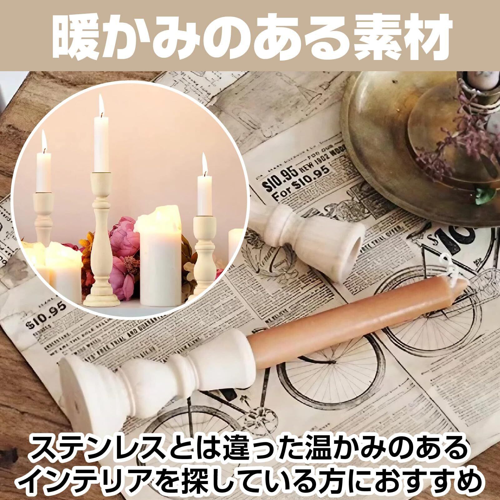 北欧風スタンド: 3点セットのキャンドルホルダーは、北欧スタイルのインテリアにぴったりです。モダンキャンと呼ばれるデザインで、自然な風合いが魅力です。手作りの温かみを感じる一品です。