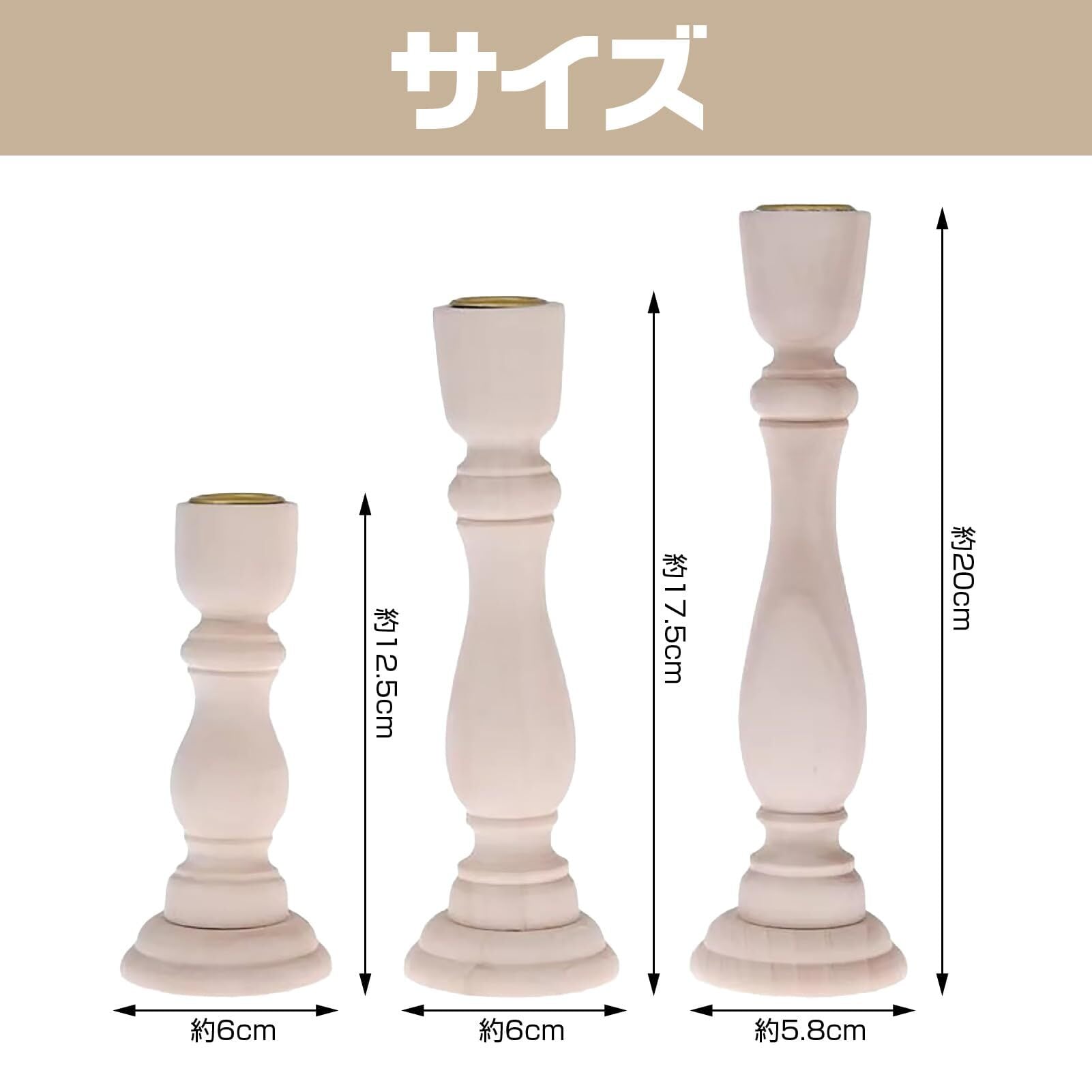【内容】木製キャンドル(S,M,L)