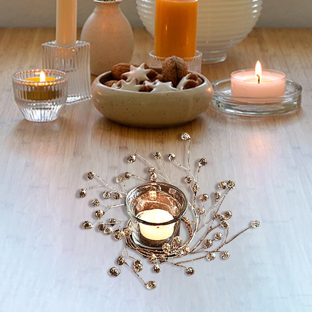 Koonafy キャンドルホルダー インテリア 北欧テーブル装飾 1個セット おしゃれ 華やか 卓上 金属製 装飾品 装飾用 金色の花輪 燭台の装飾 ダイニングテーブルの装飾 キャンドルライトディナー ろうそくデコレーション (金色)