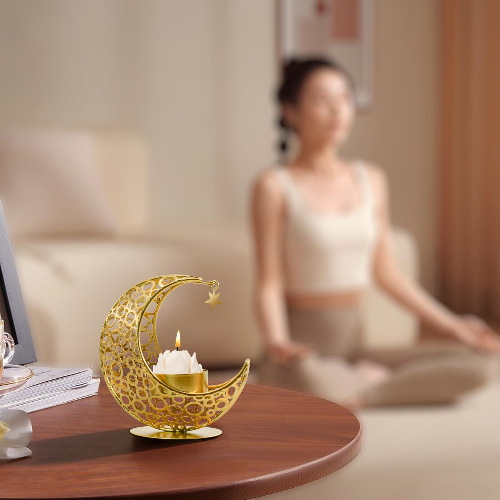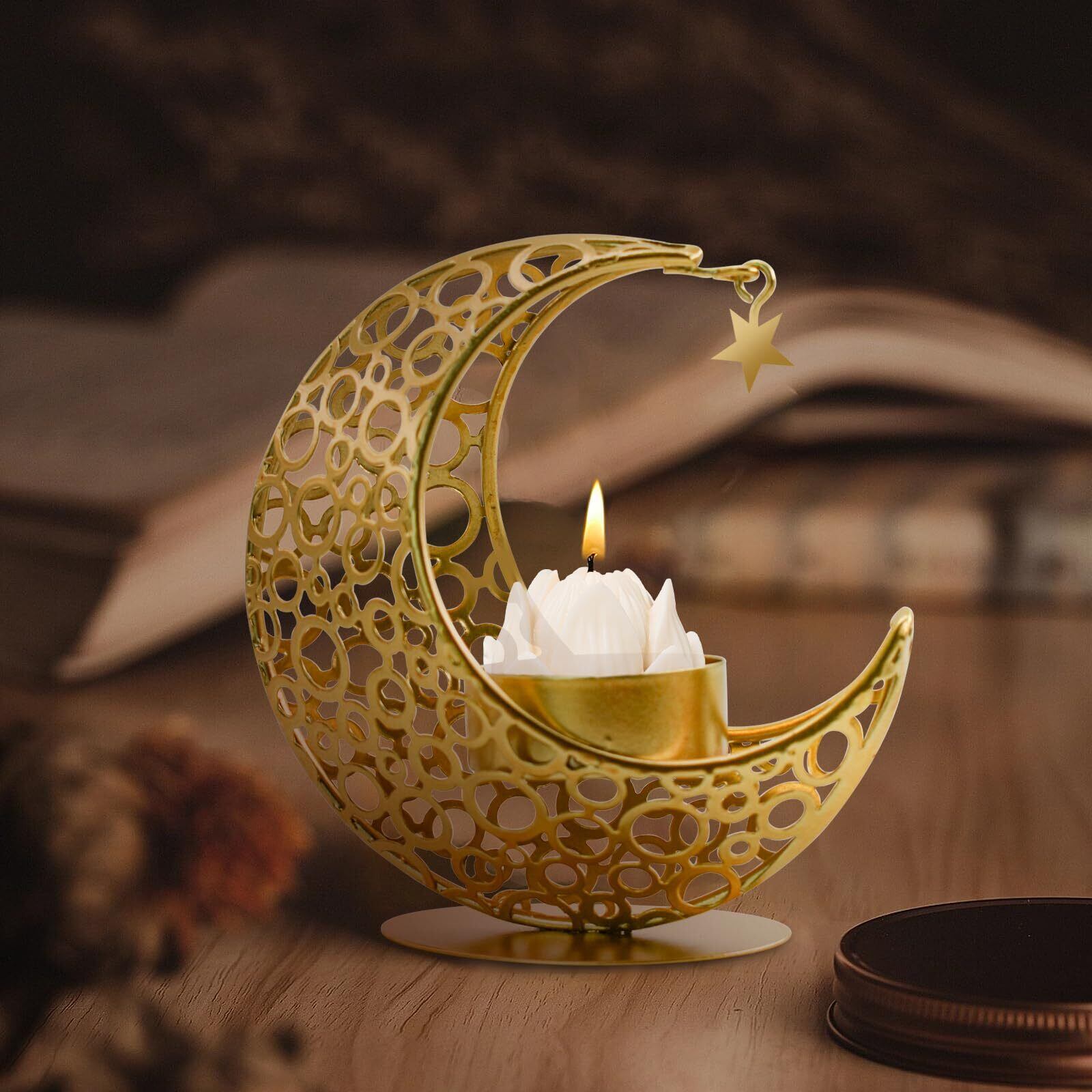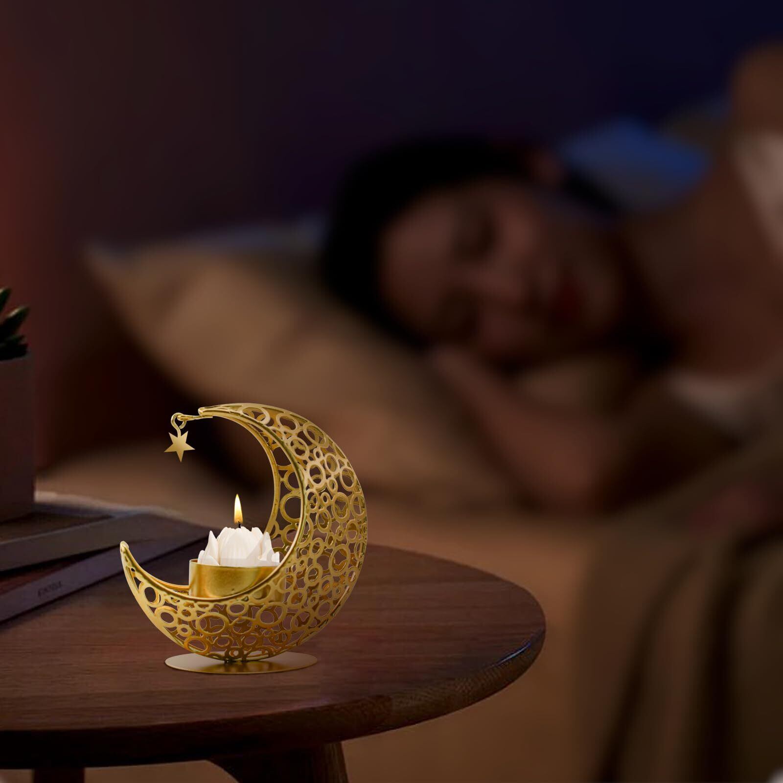 綺麗な外観:キャンドルホルダーは独特の三日月の形でデザインされ、家中に芸術的な雰囲気を加えることができます。キャンドルスタンドの設計は美しいだけでなく、夜の暗い環境で使えば、透かし彫りの部分にキャンドルの光を通すことで、ロマンチックな雰囲気を演出してくれます。