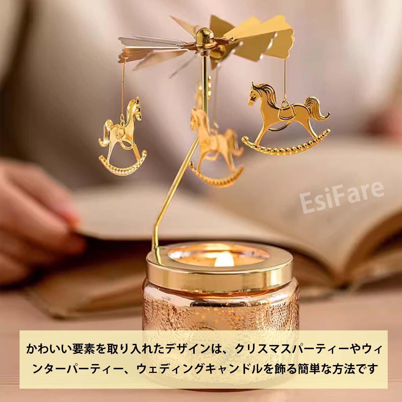 【雰囲気満点】このロータリーキャンドルホルダーは温かみのある雰囲気を作り出し、エレガントでスタイリッシュに見えます。温かいキャンドルの灯りは、家事や勉強、仕事で疲れた人々の心と体をリラックスさせ、ストレスを和らげ、癒してくれます。美しくデザインされており、カルーセルが天井で回転して影とともに踊り、美しい光と影の反射を生み出すのを見るのは魅惑的です。