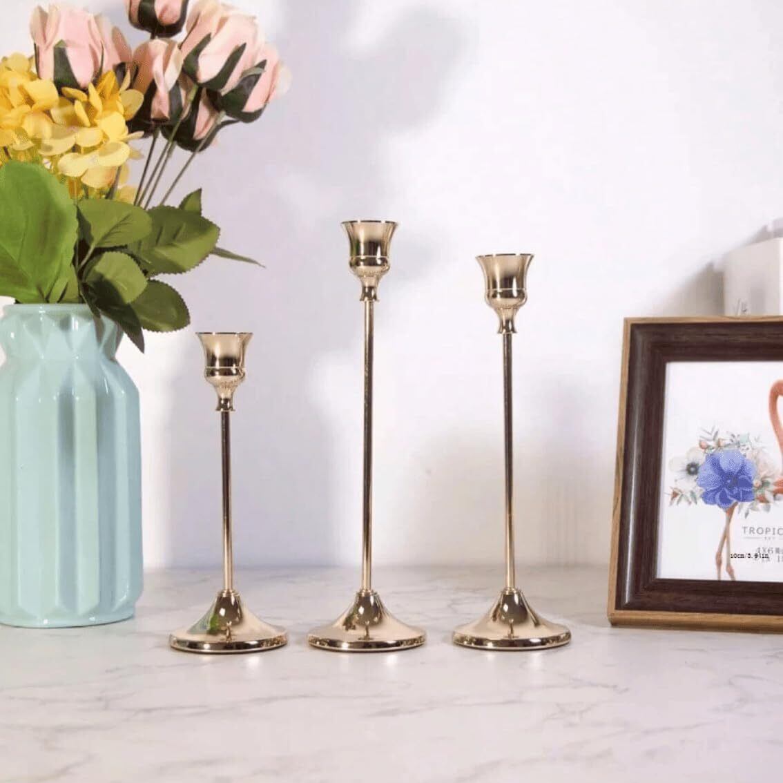 キャンドルスタンド 大中小3個セット 八女ろうそく3本付き 煤が少ない キャンドルホルダー 蝋燭立て 結婚式 クリスマス パーティ リビング
