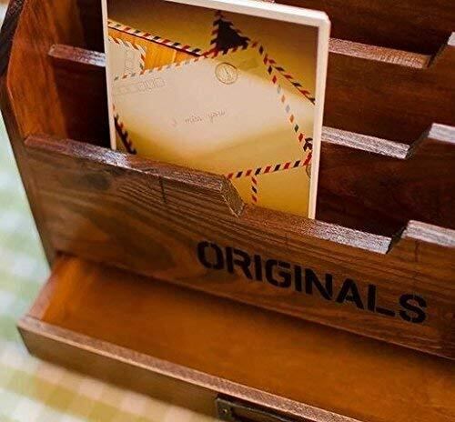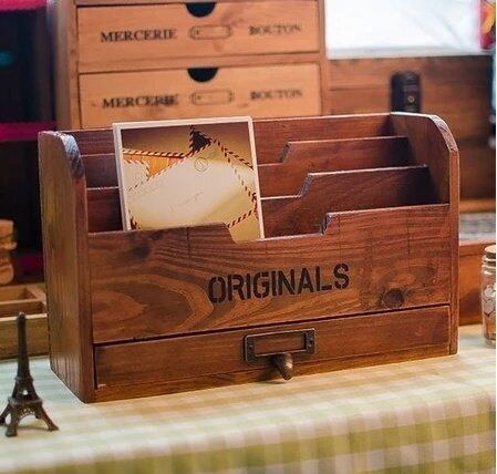 Ansimple ビンテージ風 ナチュラルな 木製 引出し付き 小さめ マガジンラック オシャレ雑貨