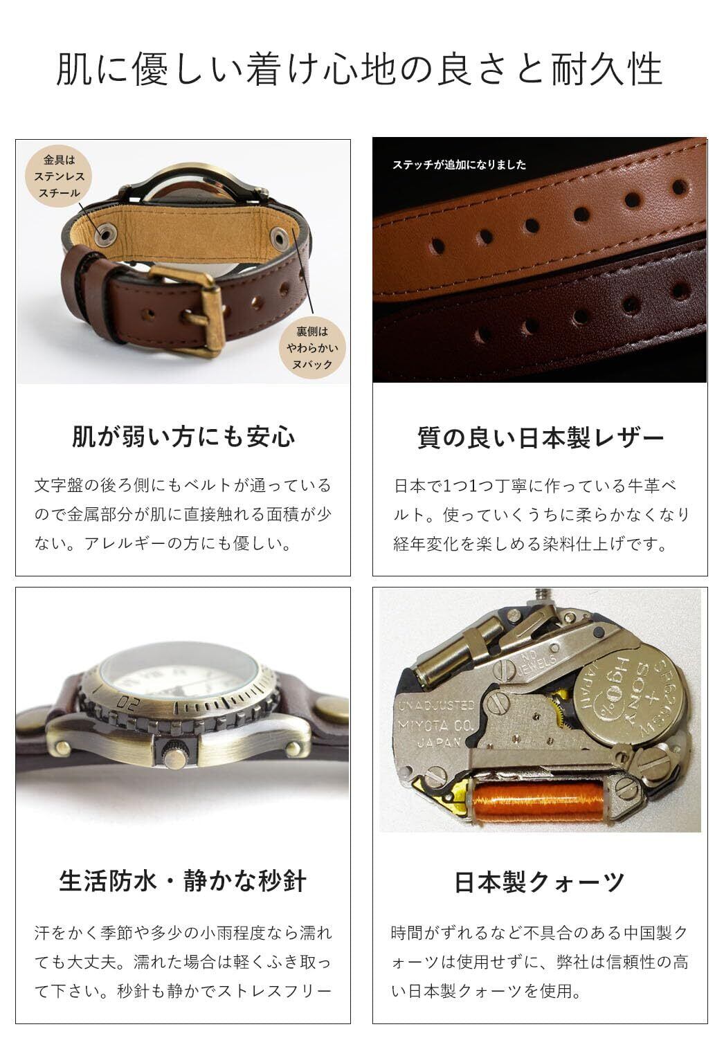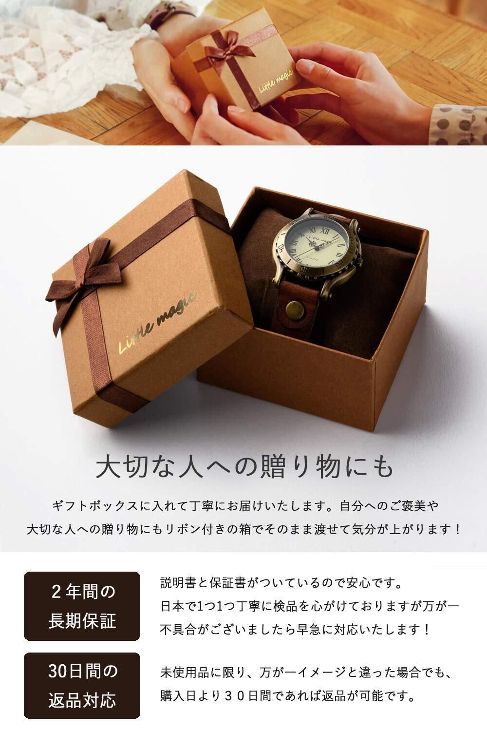 [リトルマジック][経年変化するJapanレザー]【日本製ムーブメント】[金属アレルギー対応] 腕時計 メンズ レディース 時計 アンティーク風/オールドクロック(ダークブラウンMサイズ)