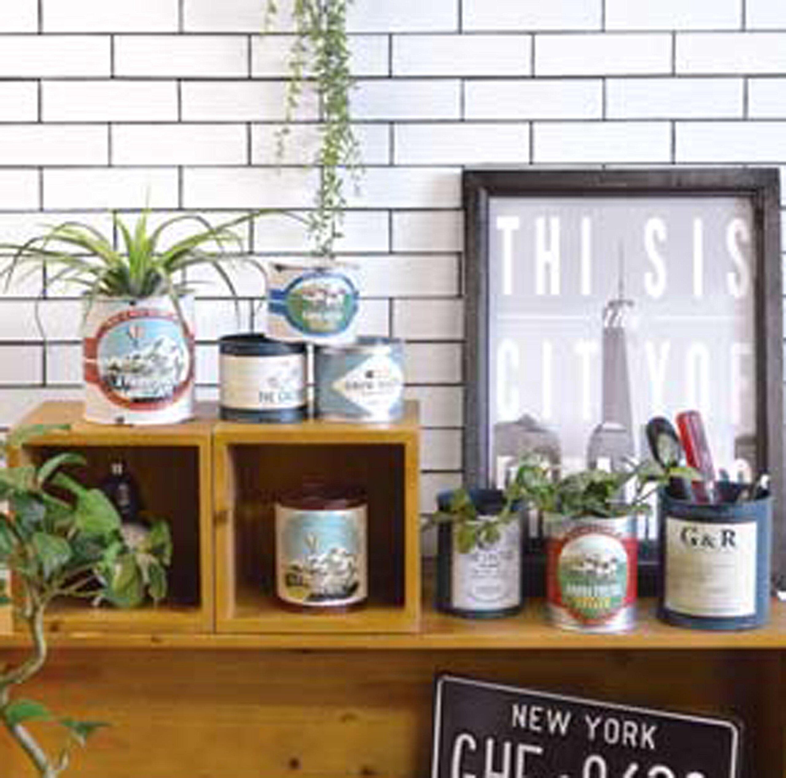 ペン立てとしてデスクなどに重宝するブリキ缶スタイルの小物いれ。