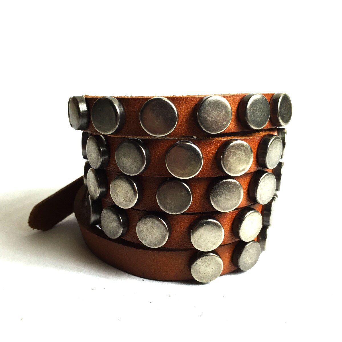 ボタンスタッズ 5連レザー ブレス 鋲 アンティーク 本革 ビンテージ