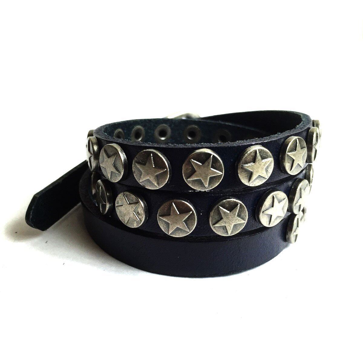 ロックスタイル星型エンブレムレザーブレスレット シンプルに際立つ存在感。深みのある、渋い色の本革レザーブレスレット。 自分だけの巻き方で色んなアレンジを楽しめるので、ファッションをより楽しくさせてくれるアイテム。 [サイズ]縦:61cm、横:1cm、厚さ:0.3sm、腕周り:17cm~19cm(5段階調節可能)。[重量]49g。[素材]本革。