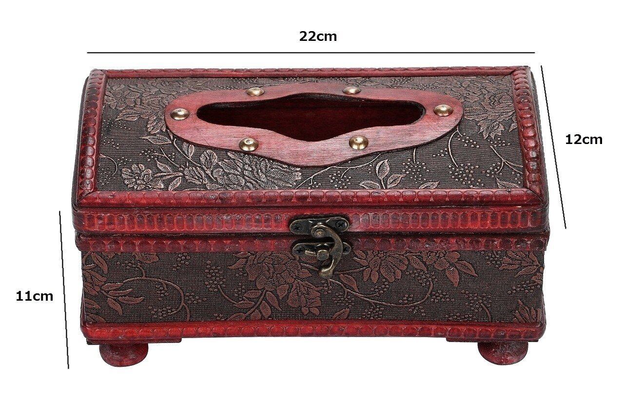 r_planning アンティーク調 木製 ティッシュ ボックス レトロ ビンテージ 葡萄蔓柄
