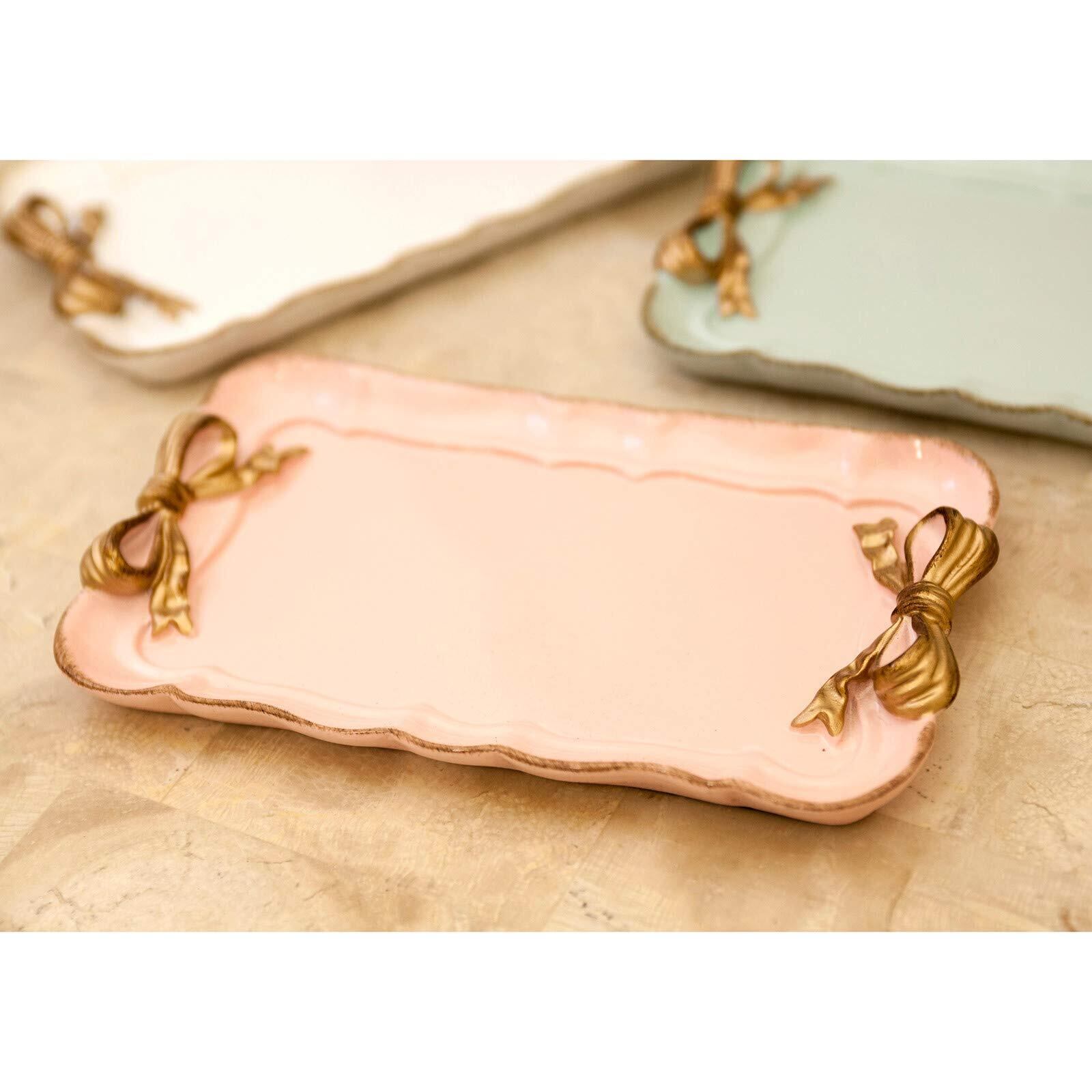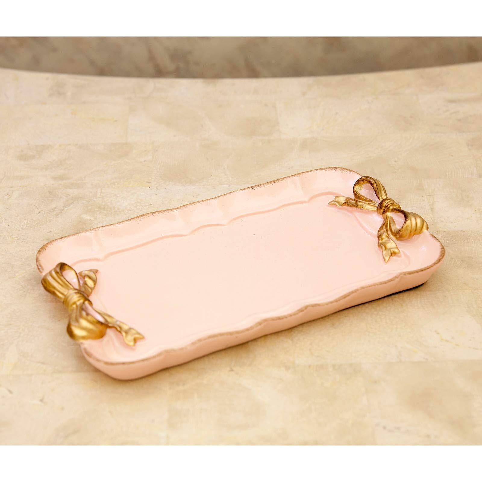 秋月貿易 ジュエリー収納 PINK W20.5×D12×H2cm フレンチリボン レクト トレイ KST18072-1