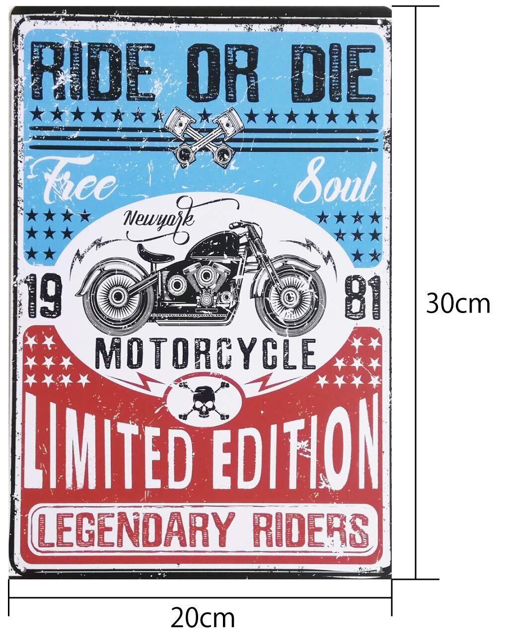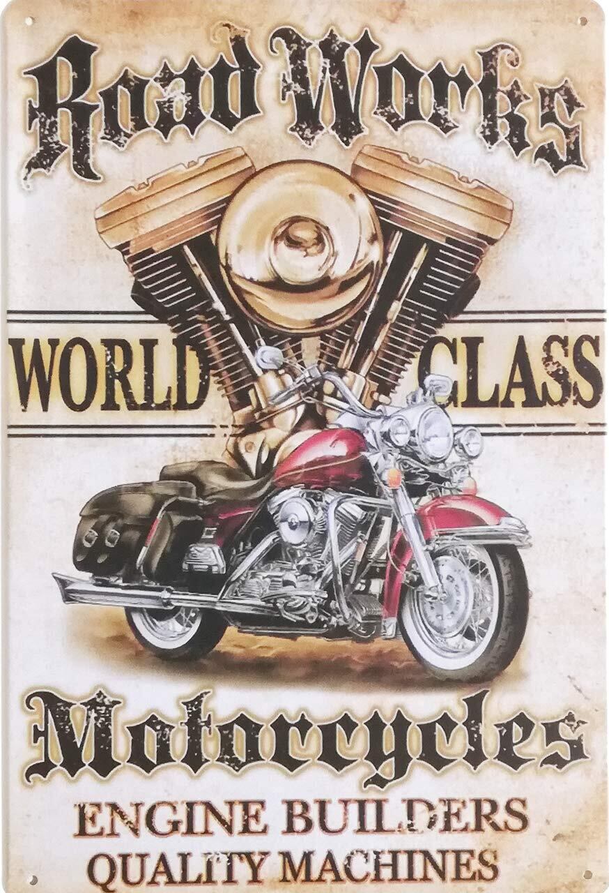 ブリキ製のレトロ看板。アメリカンやハーレー、ヨーロピアンを中心としたバイクショップやバイクをモチーフにしたカフェ、バー、レストランのディスプレイにお勧めです。