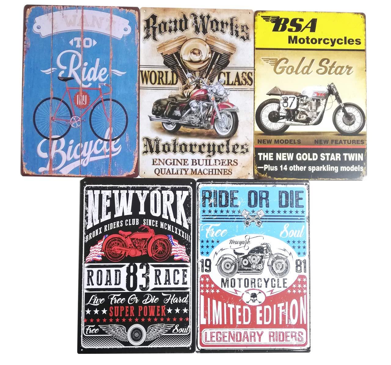 HWT ヒロワールドトレード ブリキ 看板 バイク 5枚セット アメリカン ダイナー レトロ ヴィンテージ インテリア 雑貨 壁掛け (バイク)