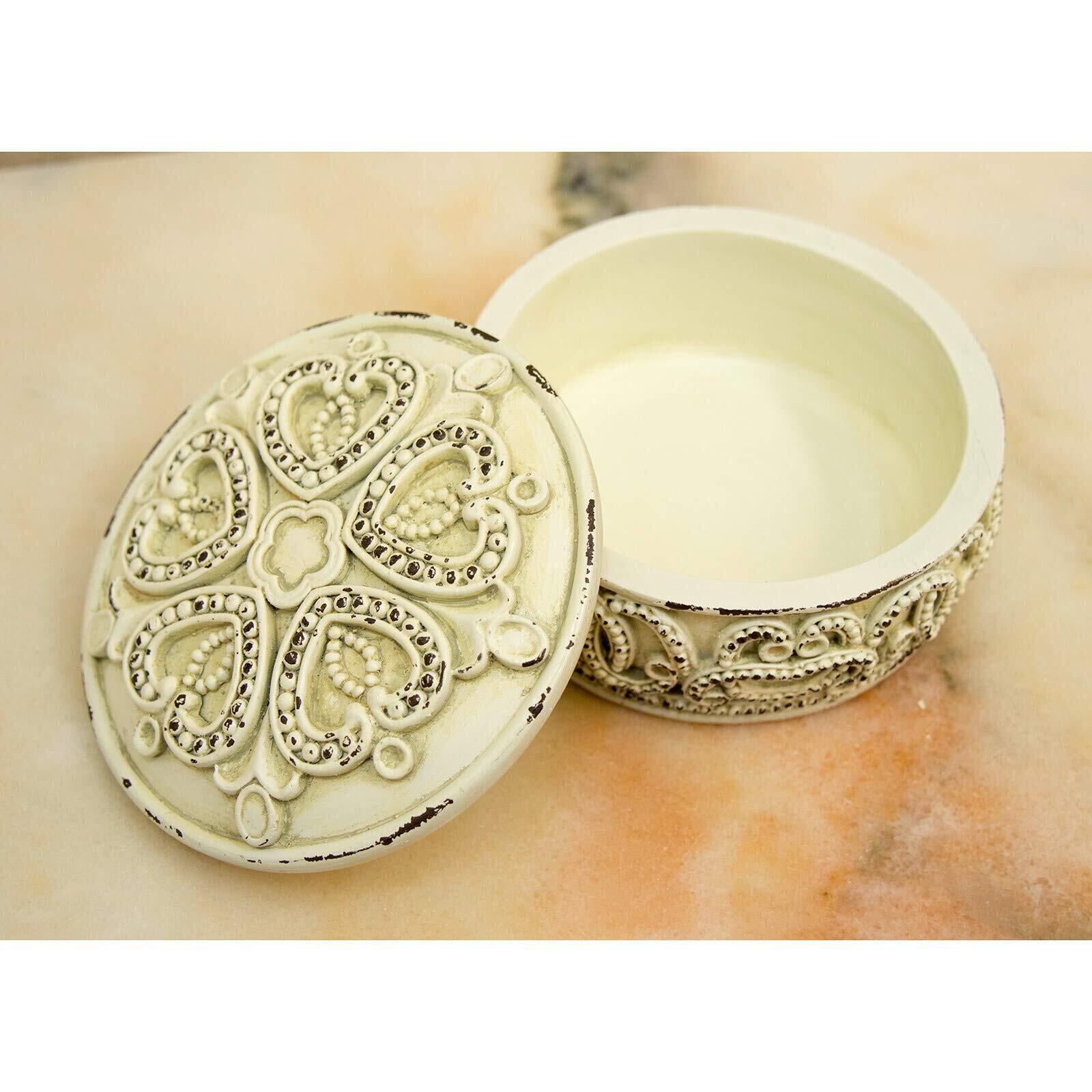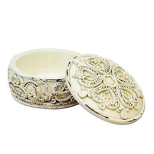 【新春セール】秋月貿易 ジュエリー収納 アンティークホワイト Φ11×H6cm Andante アンダンテ ギンゴリーフ ジュエリーボックス KST1692AW