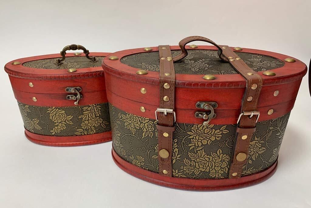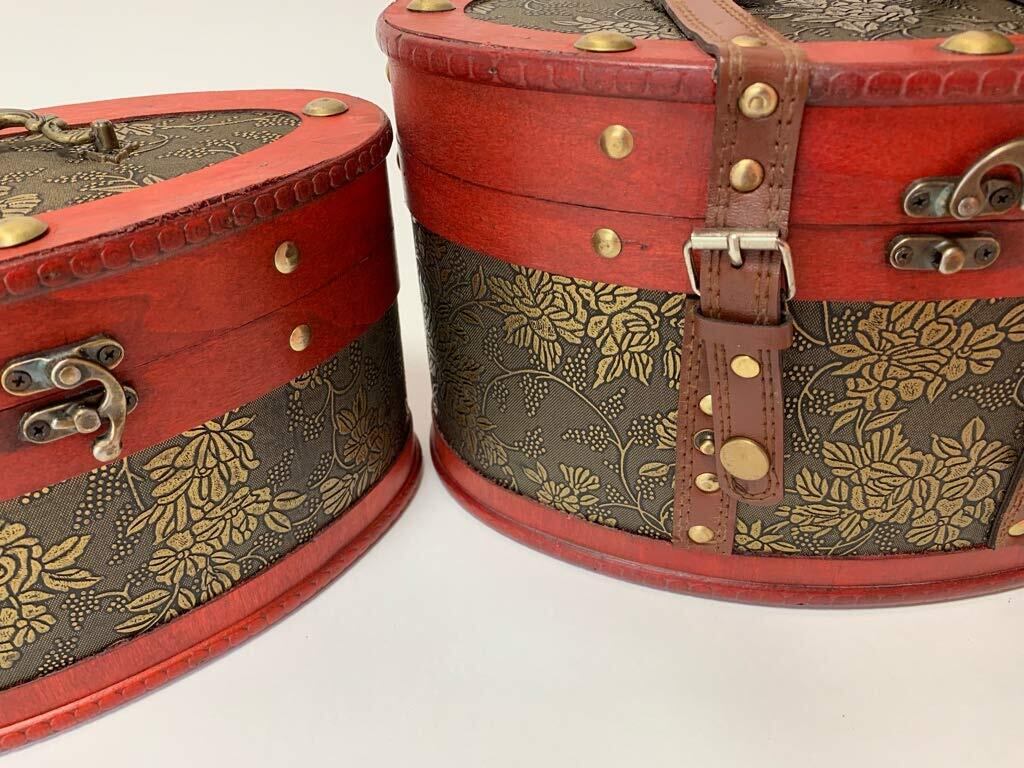 Anberotta 木製 アンティーク調 宝箱 大小 2個セット ジュエリー ボックス ケース 小物入れ 宝石箱 収納 ビンテージ加工 AT51 (大小セット)