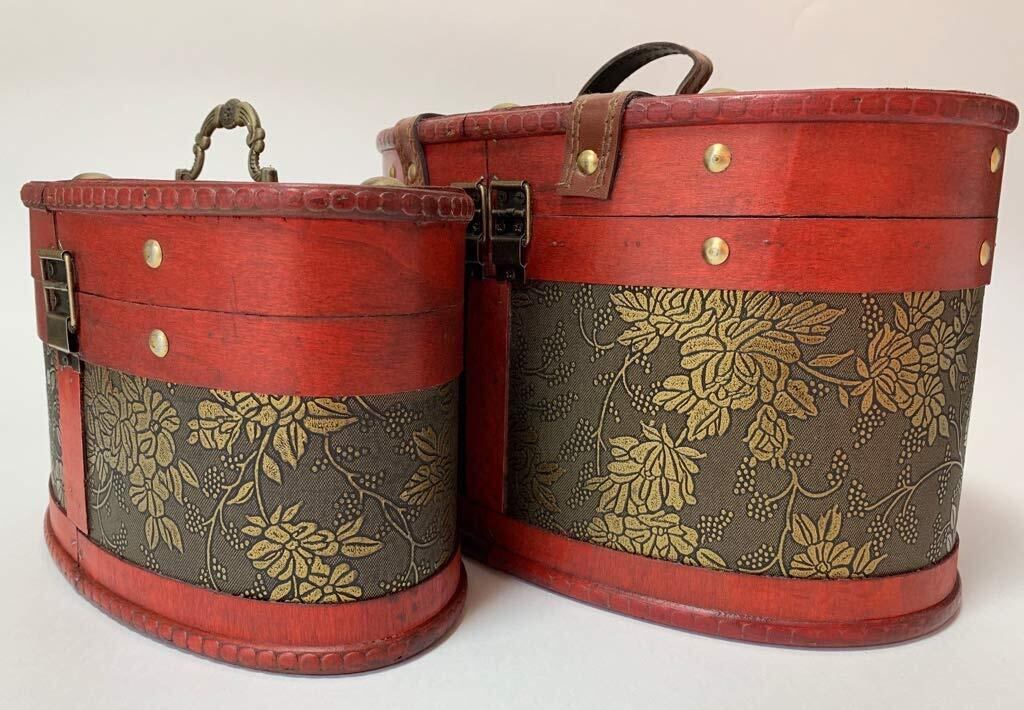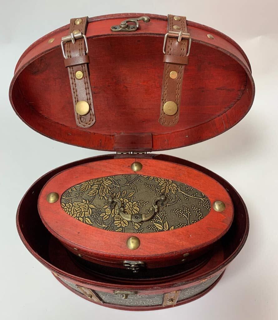 ご自宅に増えていくアクセサリーやメイクグッズ、小物等を収納できる木の風合いが素敵なアンティーク楕円形バニティボックスです! ※デザインの柄は2種類ありますが選択はできない商品になり、ランダムの発送になりますのでご了承くださいませ。