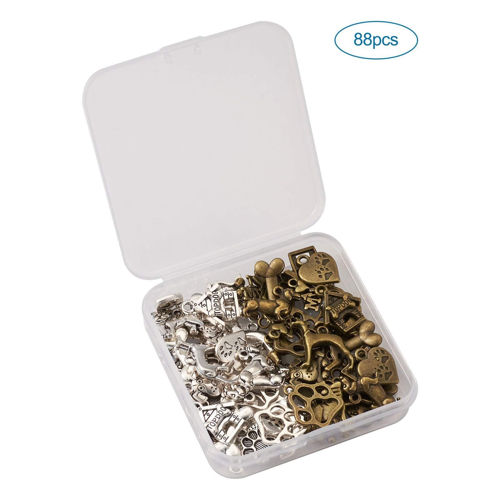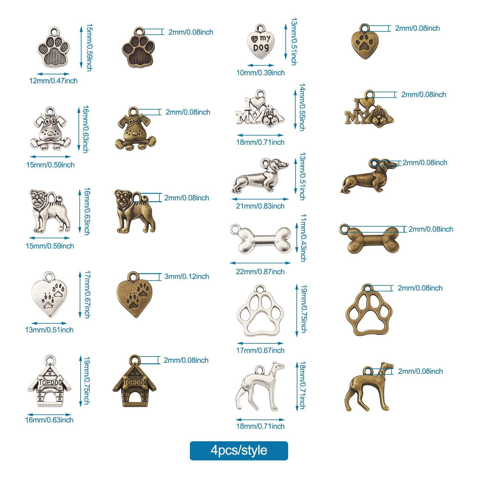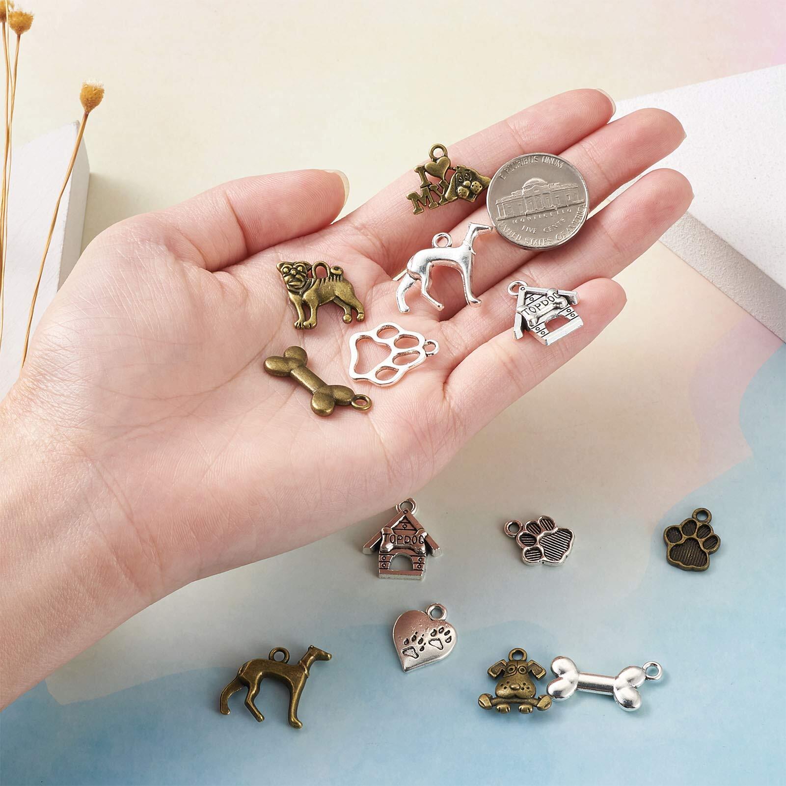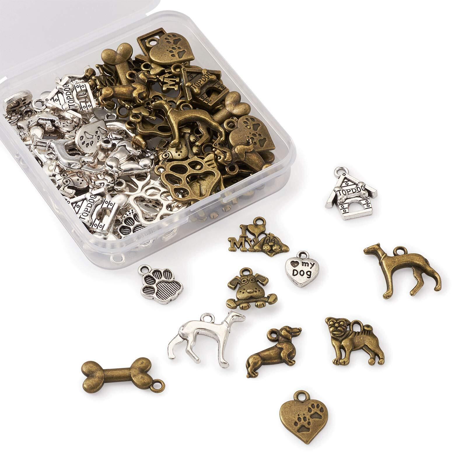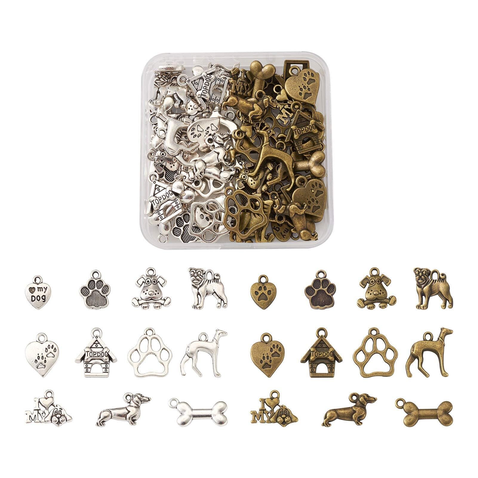 Beadthoven 犬 肉球 合金ペンダント ヴィンテージ風 チベットスタイル アニマルチャーム 約88個/箱 11種類 アンティーク調 ペット 動物 メタルチャーム 銀古美 レトロ感 可愛い アクセサリーパーツ ジュエリー用 DIY ハンドメイド 手芸材料 手作り素材 クラフト用品